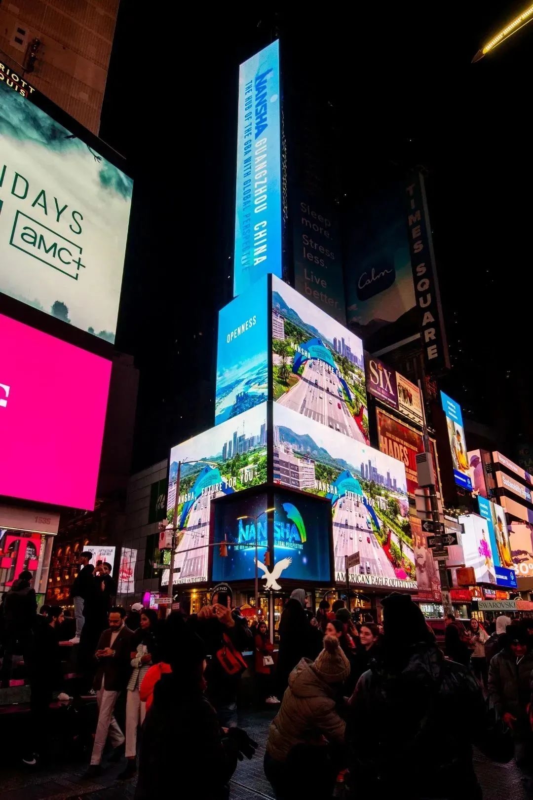 大会期间,南沙最新城市形象短片《湾区的引擎 世界的南沙》在素有“世界十字路口”之称的美国纽约时报广场亮相,以开放、年轻、机遇、幸福的国际化形象向全球人民展现开年的活力、奋斗的姿态!