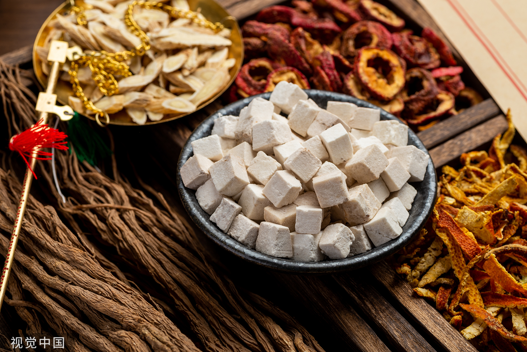 材料:茯苓、薏米、山药各30克,陈皮3-5克。