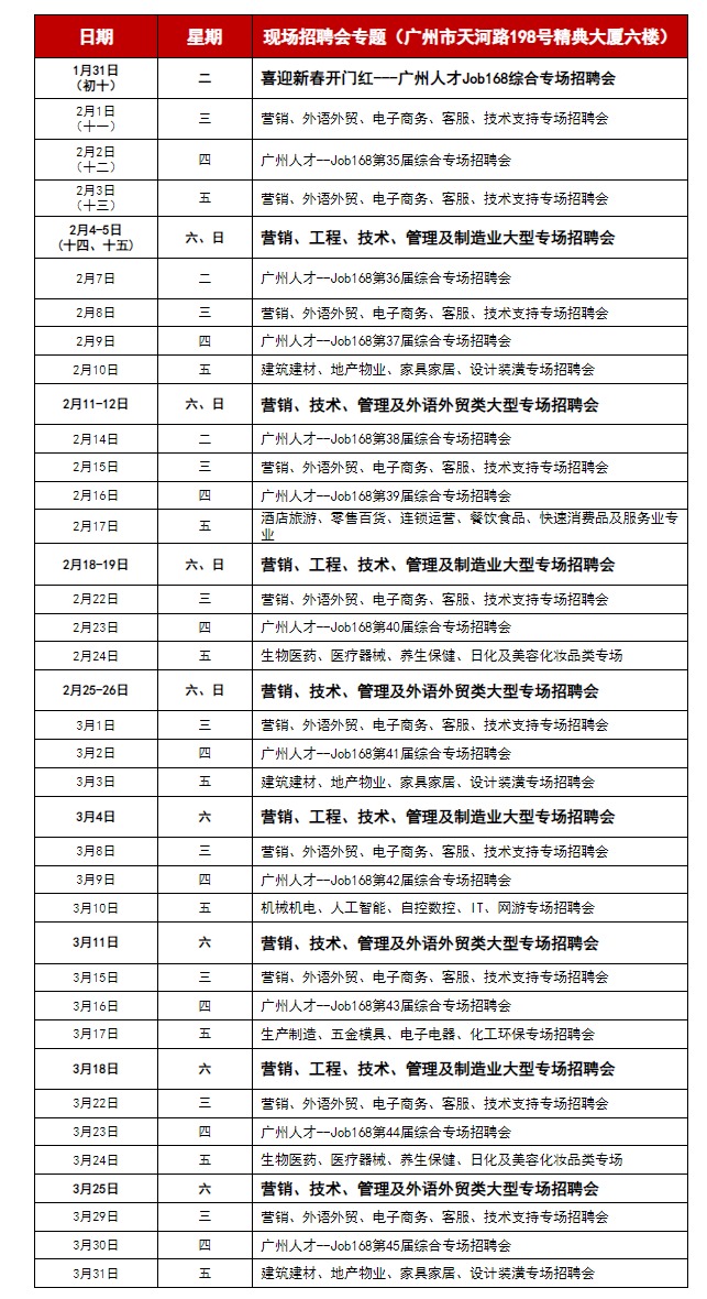 链接:2023年1-3月广州人才新春系列招聘会排期表