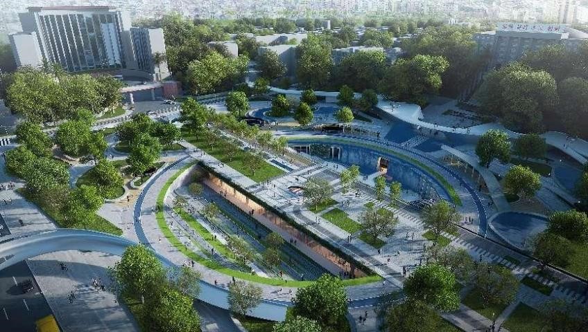 据悉,在功能上,项目将包含“中央公园、交通枢纽、城市客厅、商旅聚芯”四大功能。值得一说的是,由于项目四周文保建筑较多,项目采用“向地下要空间”来建设。其中地面层将打造城市公园,负一层则聚焦“轻商业”,包括文化展览、社会活动、政务服务等;负二层则放大商业功能,将地铁人流转换为商流;负三层则是打造一个停车场,将配套充电桩和智能停车系统。