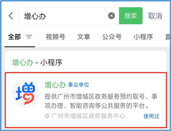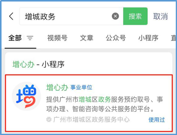 记者从广州市增城区政务服务中心获悉,“增心办”小程序2月1日起正式启用。广大市民朋友如需使用“增心办”微信小程序,可以通过微信搜索“增心办”或“增城政务”小程序,并点击进入。