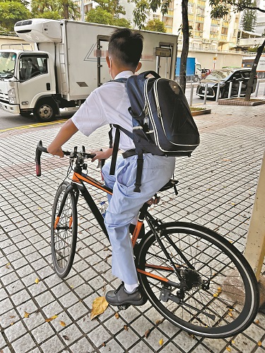 到香港陪读后,笑笑的儿子可选择骑单车上学
