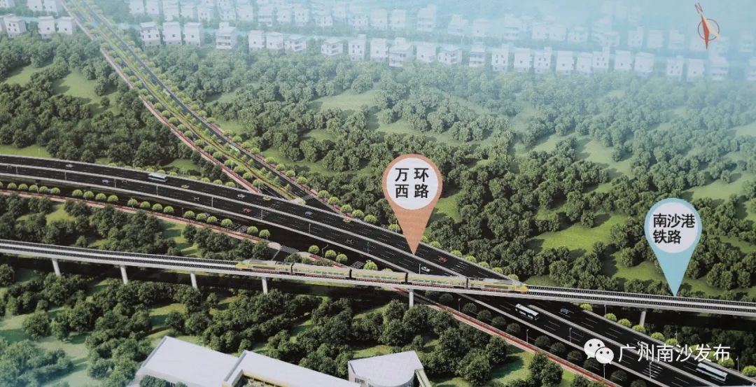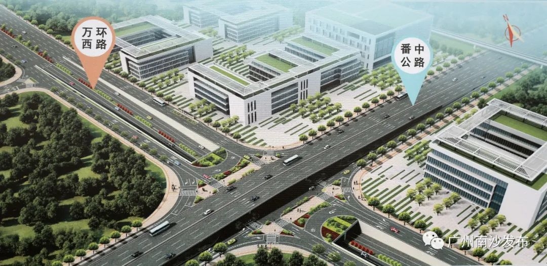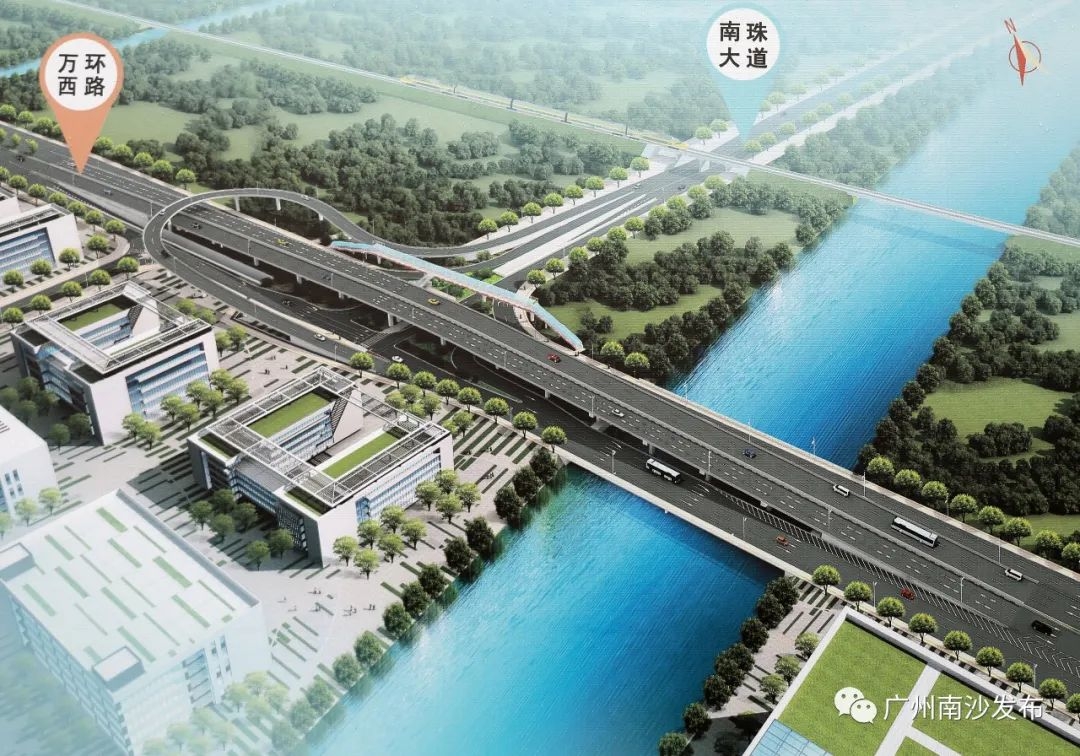 据介绍,万环西路快速化改造工程是对万环西路(下横沥南岸至南中高速段)进行改造,包括将万环西路扩建为宽60米,长14270米;将番中公路扩建为宽46米,长1290米;对南沙港铁路、番中公路、南珠大道、沥心沙东路、万龙大道5处节点进行改造。其中,新建隧道2座总长度1010米;桥梁5座总长度1960米;人行过街天桥5座。主要建设内容包括道路工程、桥梁工程、隧道工程、排水工程、交通工程、电力工程、照明工程、绿化工程等。