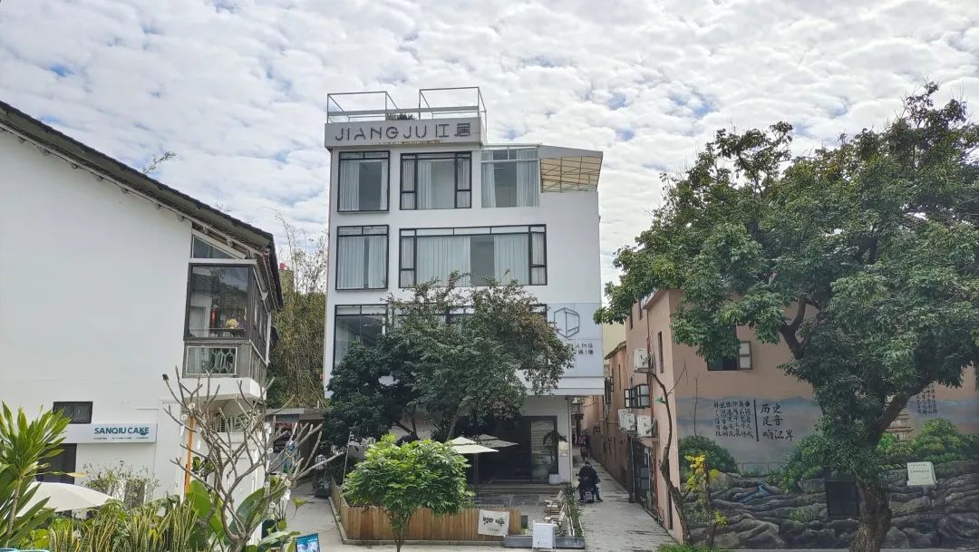 江居民宿毗邻增城区荔城街闹市中心及从莞深高速增城入口,交通便利,距广州市中心仅40分钟车程。民宿建筑面积1500多平方米,有6间别墅客房及10间普通客房,配有KTV、茶室、露天烧烤等,属于小众简约风格,其北欧与工业风的融合设计备受年轻人喜爱。该民宿结合1978电影小镇文创旅游特色及发呆部落慢生活的主题,让每一位客人都体验到闹市取静,慢看日出日落的恬静生活,从而忘记工作的疲倦。