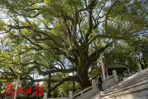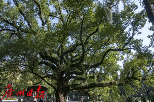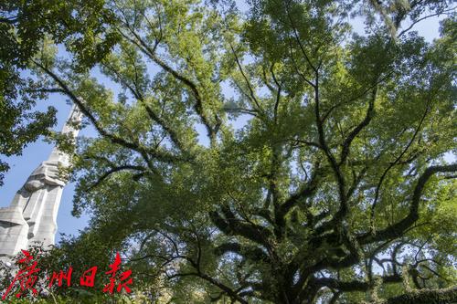 广州起义烈士陵园位于广州市中山二路,陵园面积26万平方米,分陵区和园区两个部分。在烈士陵园起义纪念碑西南侧有一棵树龄近200年的樟树,古树枝繁叶茂,树冠极大,它见证了烈士陵园的发展历程。