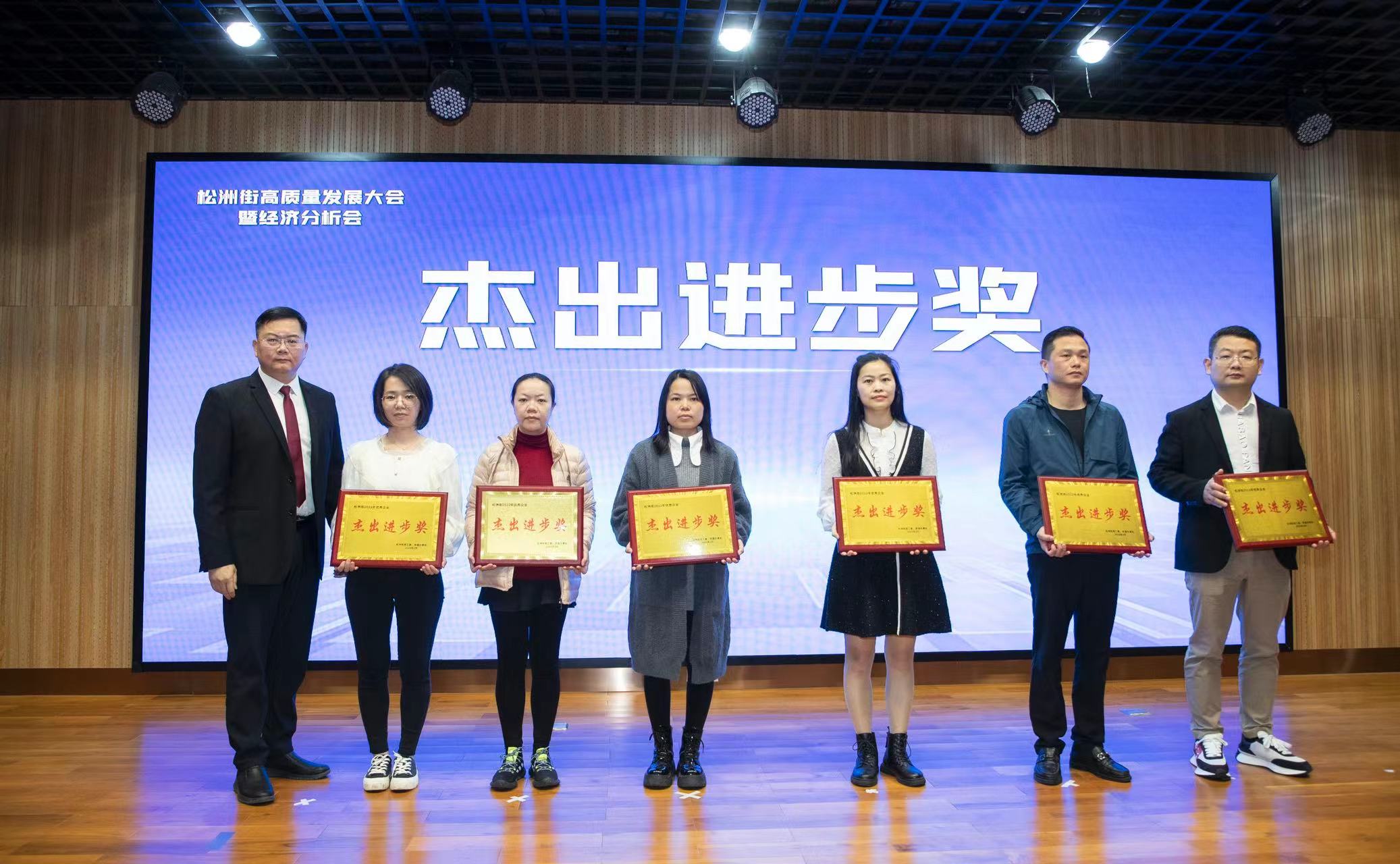 厚植发展沃土,不少企业扎根松洲,开枝散叶,发展壮大,在近年来的疫情防控和生产经营中践行企业担当,也为松洲高质量发展打下坚实基础。会上,松洲街公布了辖内优秀企业获奖情况,并为发展潜力奖、杰出进步奖、突出贡献奖获得者共20家企业代表颁奖,鼓励企业树立信心,为区域高质量发展再创佳绩。