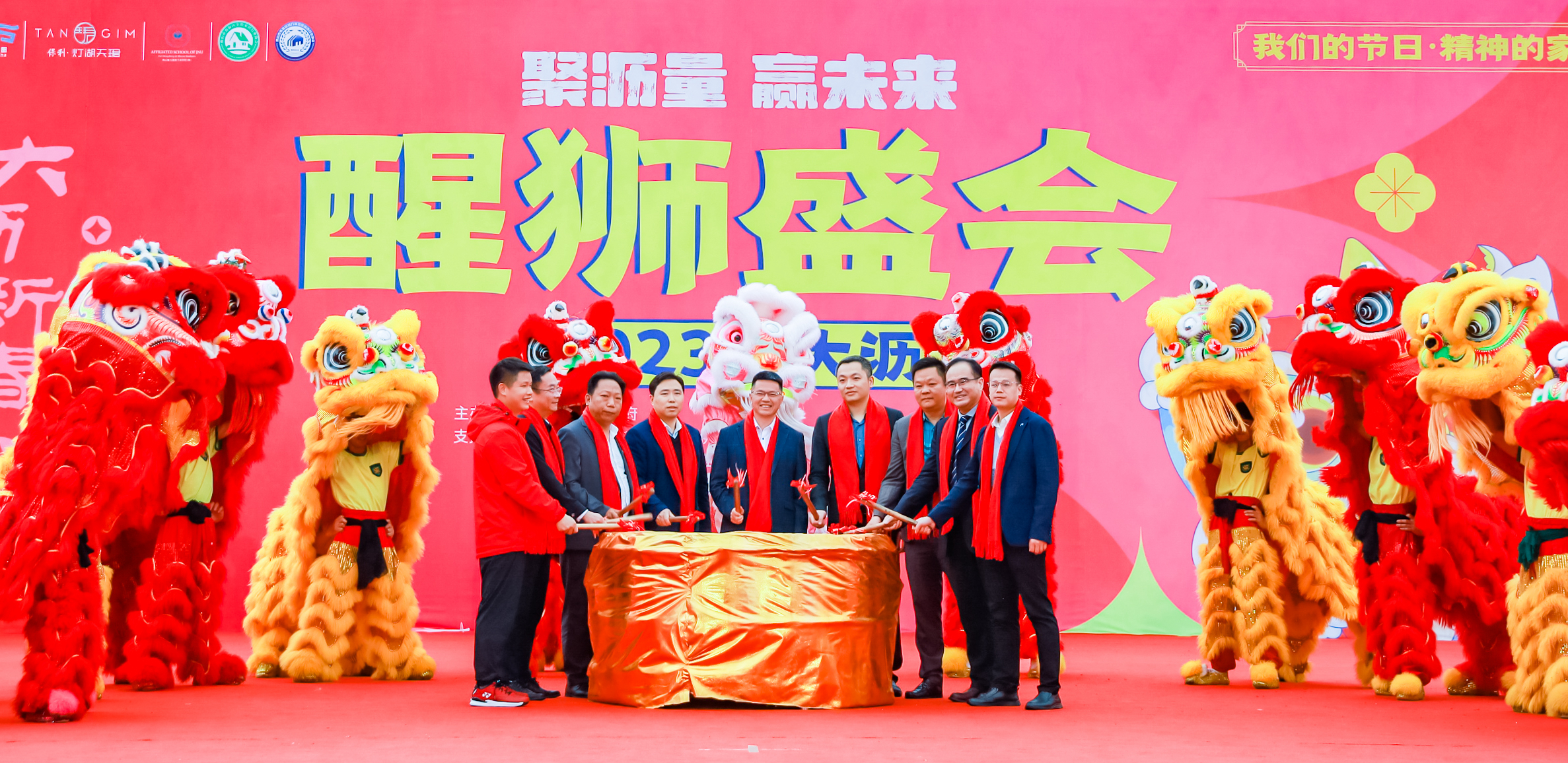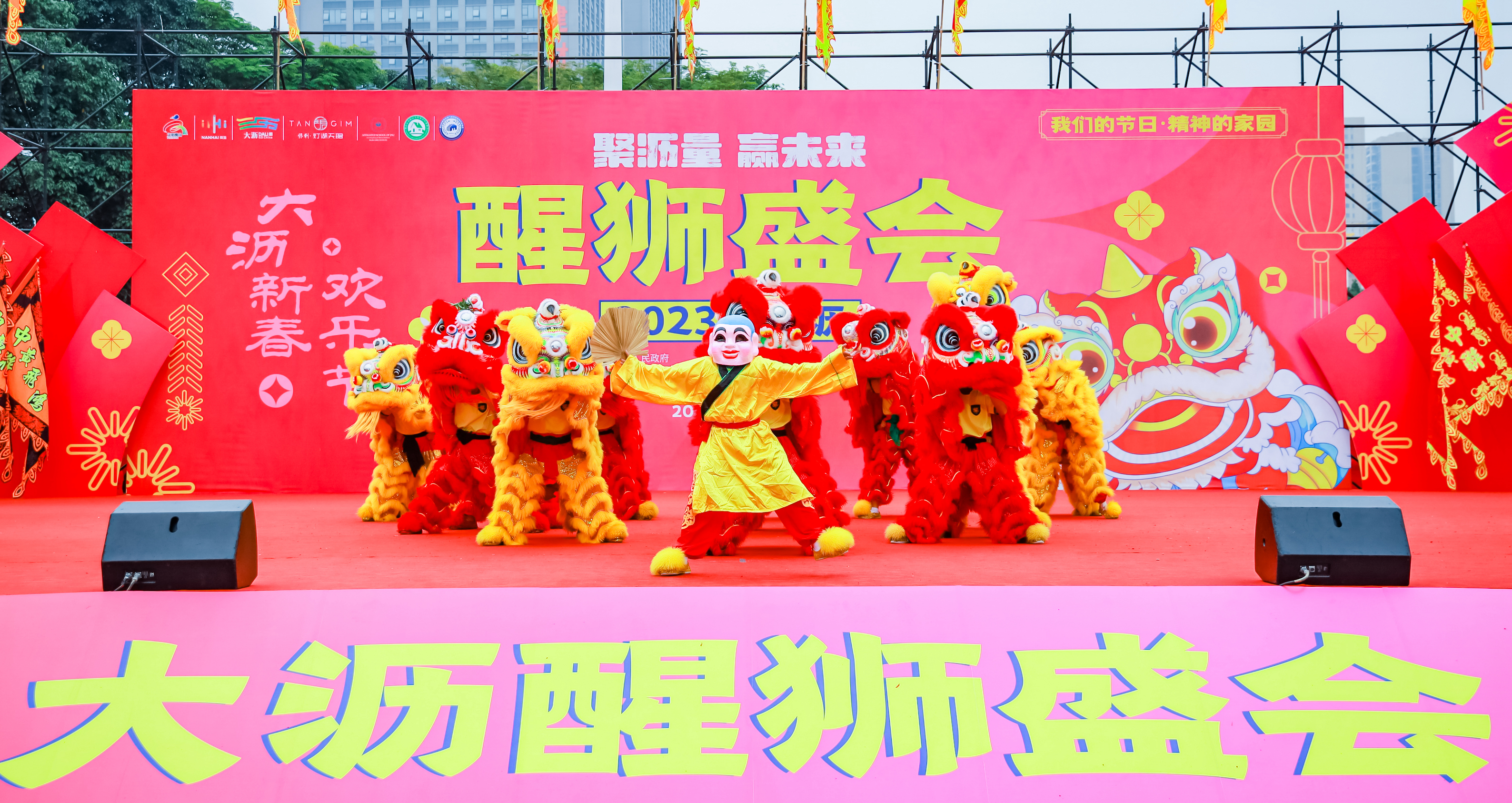 佛山市南海区素有“龙狮源地,飞鸿故里”的美誉,大沥镇是龙狮源地的核心区域、是名副其实的中国民间文化艺术之乡(醒狮之乡)。当日下午14时,有着“世界狮王”美誉的大沥中联黄飞鸿武术龙狮团送上精彩的鼓阵表演《金鼓齐鸣贺升平》,打响了本次活动的头炮。一头头精神抖擞的醒狮齐聚在舞台上,给观众带来一场精彩绝伦的狮艺盛宴。