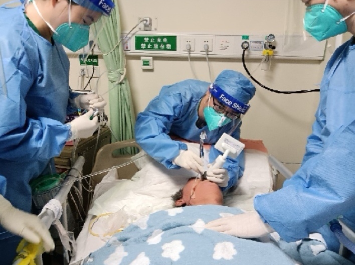 医务人员为重症患者插管