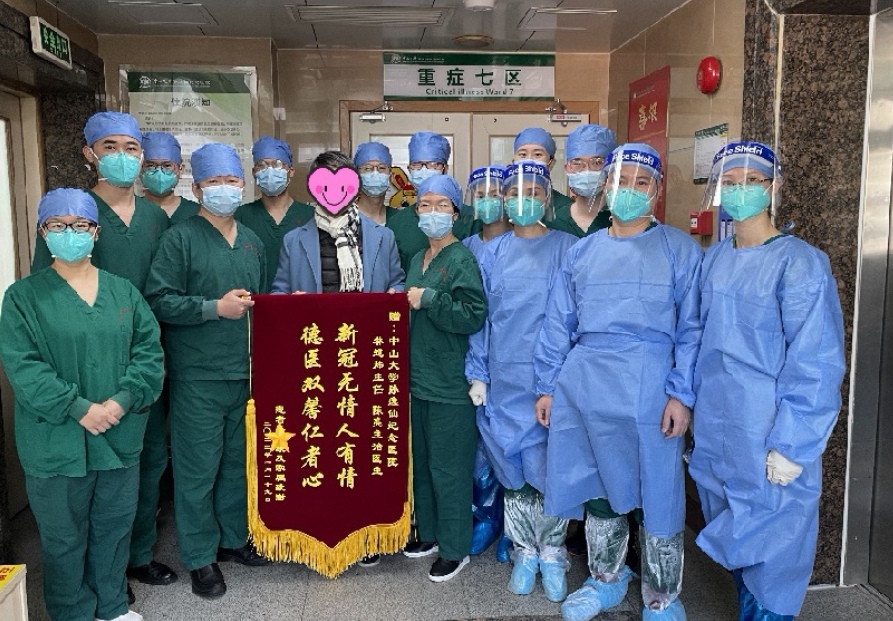 重症患者出院时送锦旗感谢医务人员