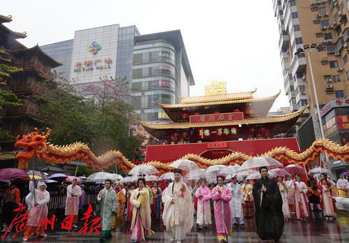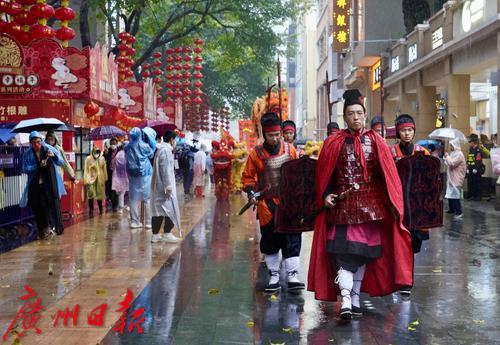 2月5日,元宵佳节,陪伴市民十三载的岭南民俗文化品牌顶流——广府庙会幸福回归。当日上午,广府庙会开幕展演在主会场城隍庙忠佑广场拉开了庙会的帷幕,备受瞩目的民俗文化巡游重回闹市街头,南越雄风、龙狮闹春、五仙送福等队伍为市民送上新春祝福。精彩的文化盛宴、热闹的街头、涌动的人潮……城市的烟火味回来了。