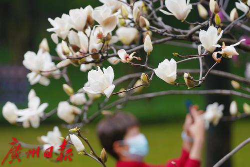 春暖花开,万物复苏。广州珠江公园的玉兰花迎春绽放。近看,盛开的玉兰朵朵向上,艳丽怡人,芳香淡雅;远观,一丛丛玉兰繁茂枝头,款款大方,令人惊艳。