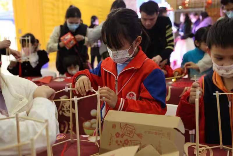 活动中,50对亲子家庭动手制作花灯,近距离感受非遗的魅力。增城区博物馆负责人表示,“这是增城区博物馆首次将非遗引入商圈,也是我们为商圈引流,新年暖企的行为,我们接下来还会继续将非遗引入人流密集的商场、学校等。”
