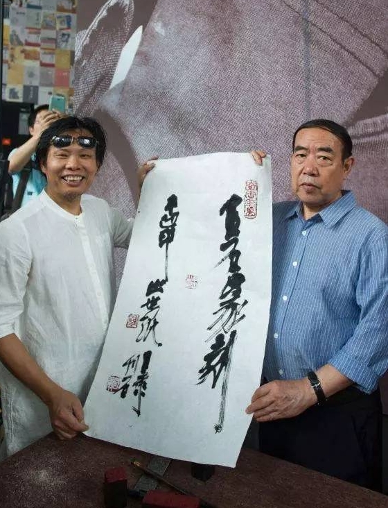 形状这般的孱弱,他应该低眉顺眼,应该寡言少语,但不,他始终不能安静,走来走去,好激动,表情丰富。不停地要说笑,边说边笑,边笑边说。我见过他在宣纸 上写字,墨调得很稀,长锋笔戳过去,几乎是端着水墨,淅淅沥沥地就到了纸上,然后使很大的力和很大的动作,如武术一般,出奇的是墨是墨、水是水,有海风山 骨的味道。那场面,能想象李白酒后作诗,李白可能很清高,很潇洒,他却几幅字写成,满身墨渍,尤其用卫生纸按拓,一团一团脏纸在地上丢下一层。在印石上刻 字那就更疯了,眼镜往额上一推,好像让头上再多两只眼,然后拿块印石,看,看,看得印石都羞了,猛地从怀里掏出刀来,别人的刀都是一乍长的,他的刀一指粗 半尺长,简直就是钢凿子!咔,咔,咔,他讲究节奏。他刻印的时候大家都围上来,不敢出声,他却好为人师,讲为什么这个字这样结构,这一刀处理有什么含义, 怎么会出现这种效果啊,他哇哇大叫,为自己得意。
