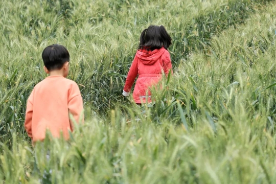 藏在市中心的绿色农田里有哪些颜色?大地为布、麦田勾线的宝藏“福”字找到了吗?在老师的带领下,孩子们在麦田里感受风吹麦浪,在画纸上落下所见所感,记录田间的第一抹春色。
