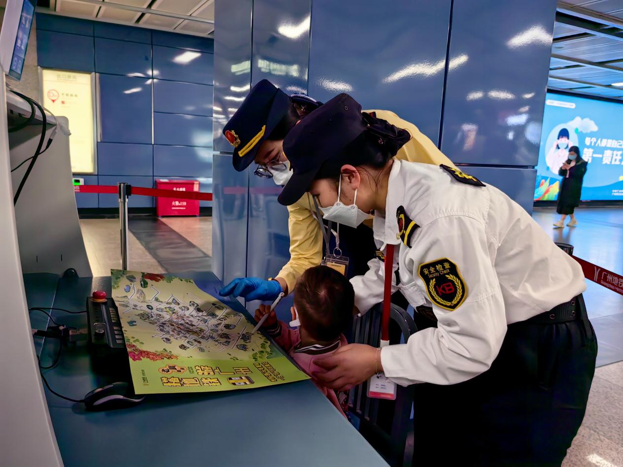 广州地铁温馨提醒,外出时请照顾好身边的老人、小孩,如果不慎在地铁站内走散,可第一时间联系车站工作人员寻求帮助,同时留意车站广播。另外,最好给语言不通的老人、小孩随身携带写有联系方式的小卡片,方便应急时能够及时联系。