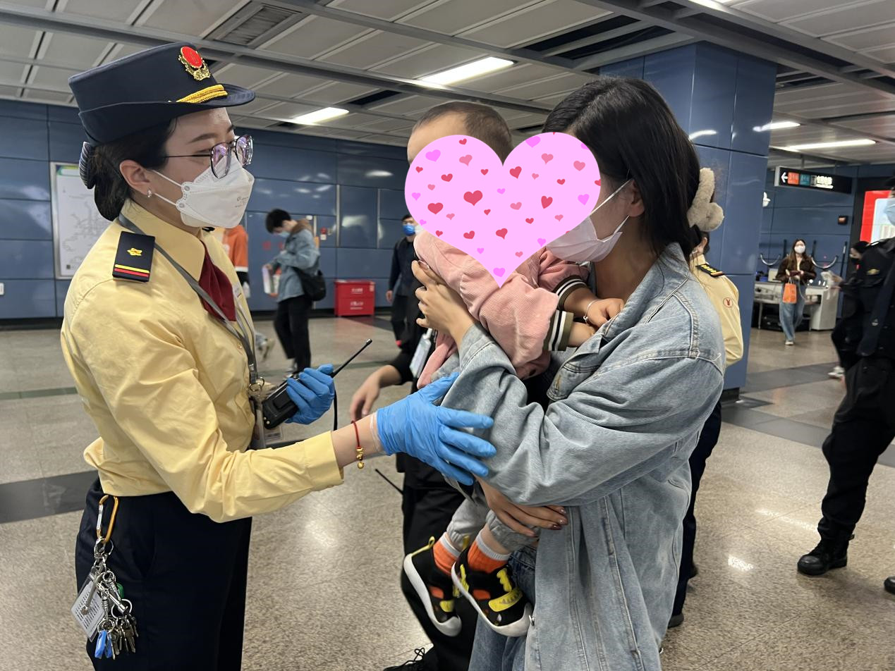 就在这时,一名听到车站寻人广播的热心乘客经过鲜花机,见刘乐维抱着小孩便告知,旁边的超市也在播放寻人广播。听罢,刘乐维马上将信息汇报给赶到现场的值班站长刘穗蓉和辅警。刘穗蓉安排梁志贤致电丽影广场核实是否也有寻人信息,自己则和辅警前往超市尝试寻找家长。
