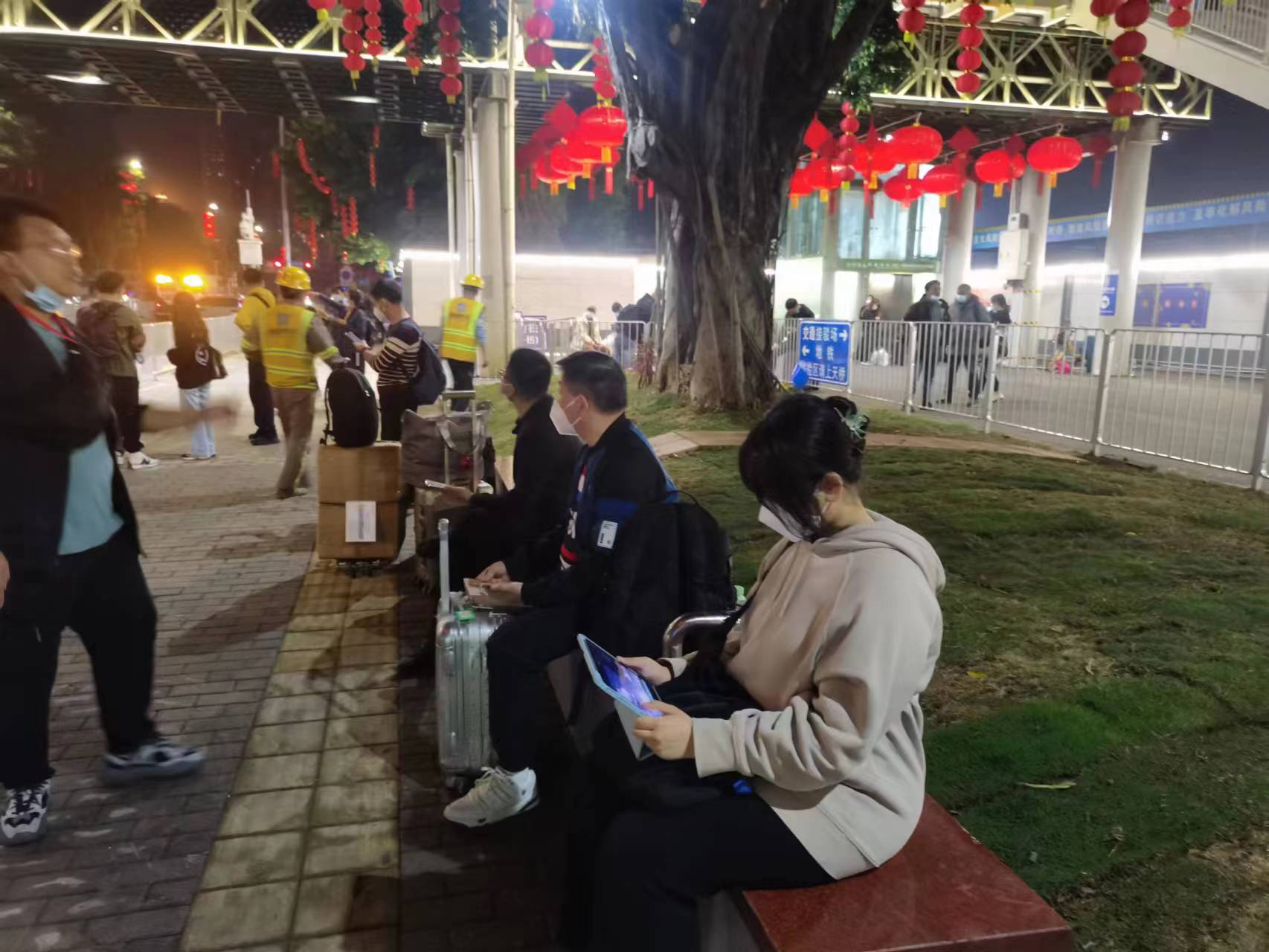 2月5日晚(離恢復通關還有不到一個鍾),口岸外面已經有了等着通關的人群。