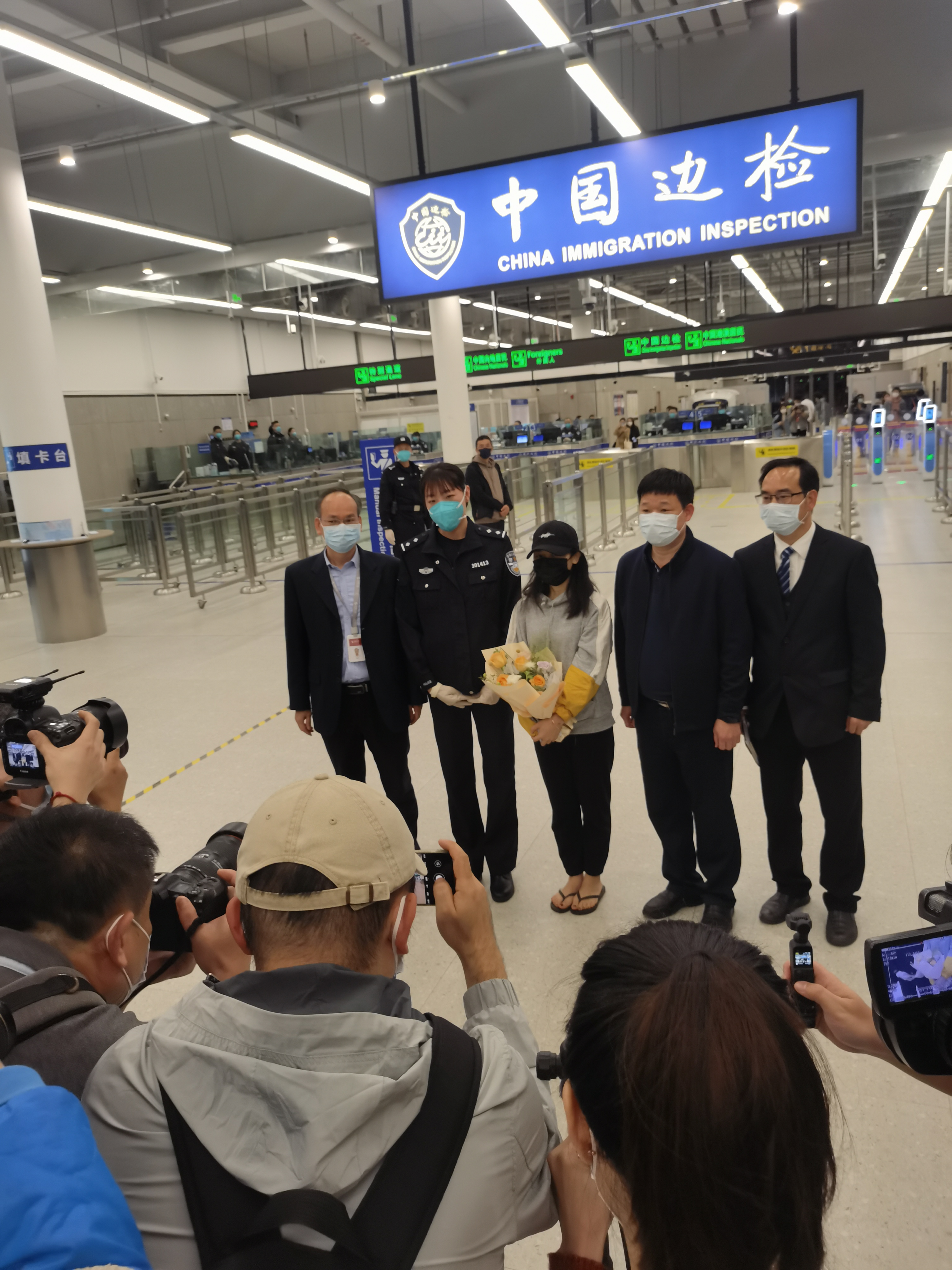 2月6日,第一個從香港通過深圳羅湖口岸進入的旅客耿先生。