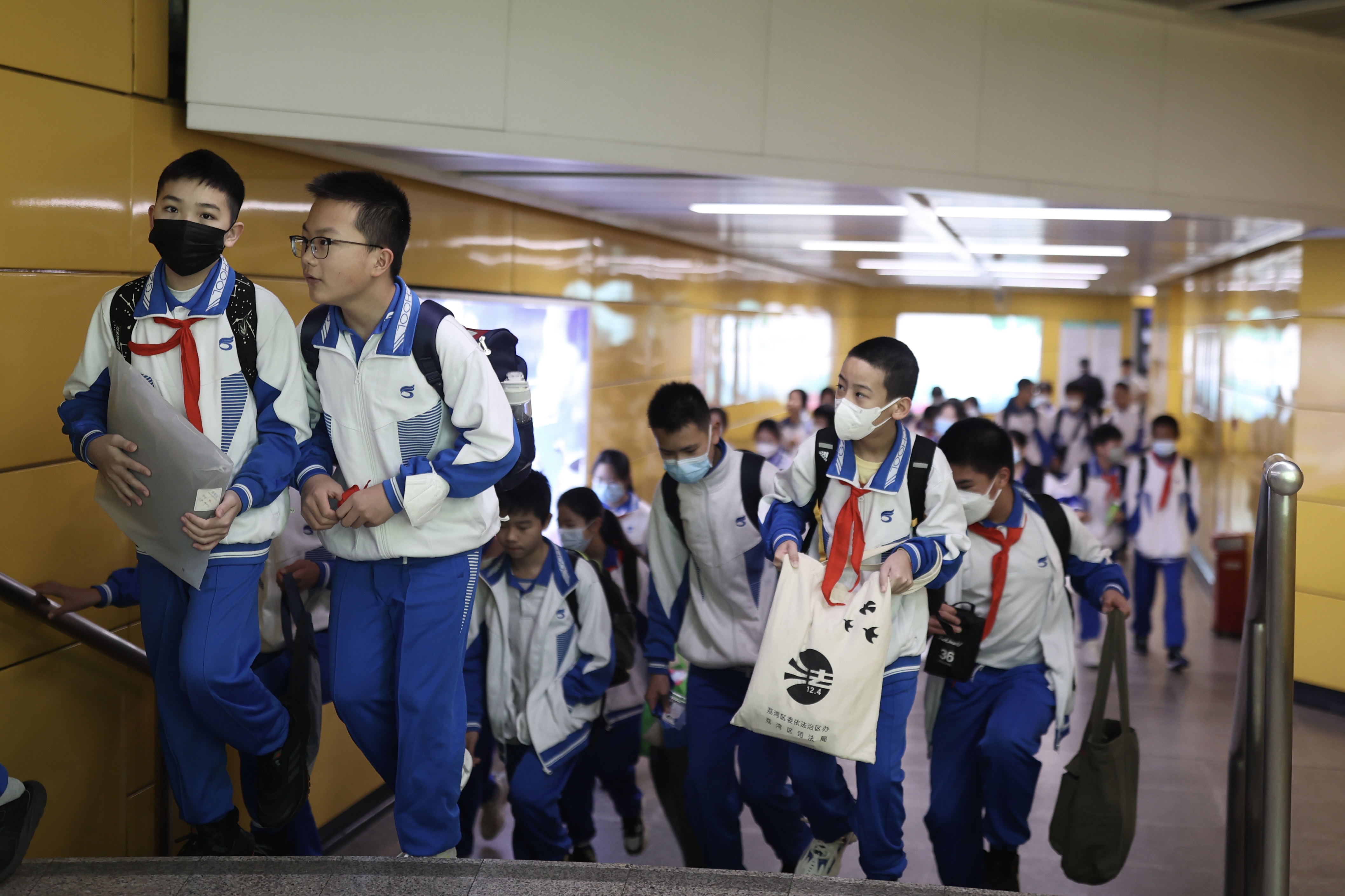 開學第一天,上午7時,清晨的地鐵上滿載着朝氣蓬勃的中學生。