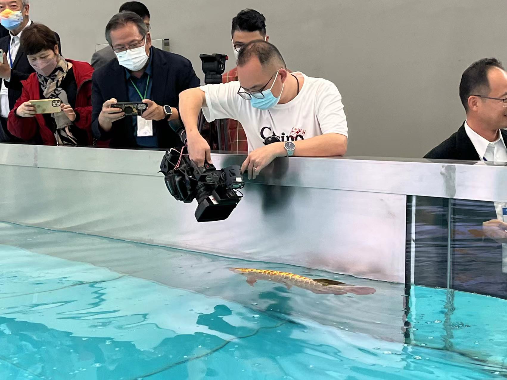 活灵活现在水中遨游的机器鱼,动作灵敏迈步舞蹈的足类机器人……在香港科技大学(广州),考察团成员兴趣盎然参观了港科大(广州)学生们产出的创新科研成果。“行动吧!让我们一起打造下一个大疆!”从创意无限的科研展品到热血沸腾的标语,处处闪现港科大创新基因之光。