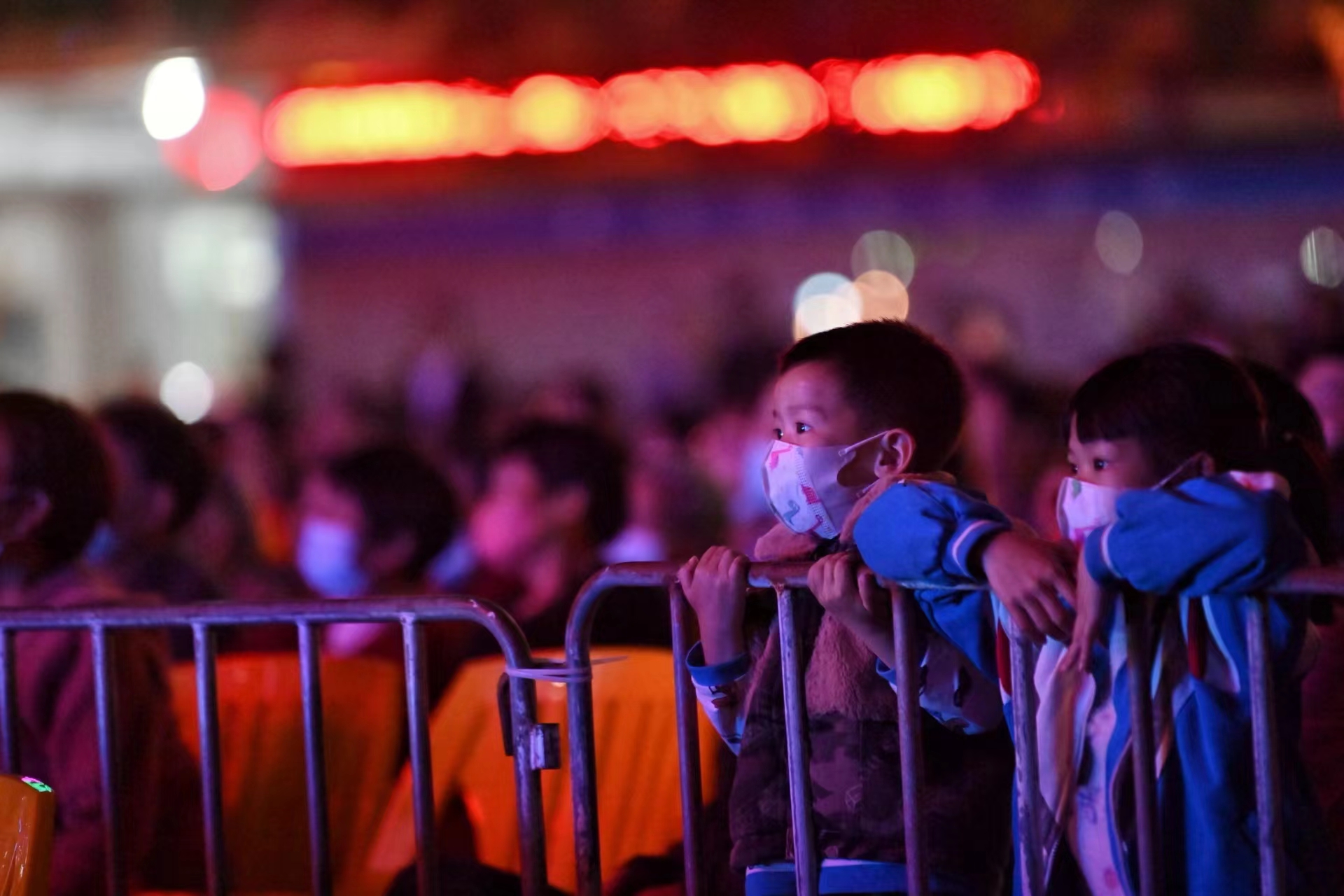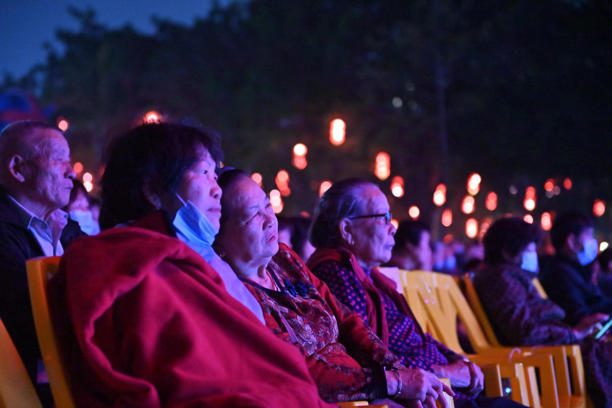 40多岁的张女士带着83岁的母亲来看戏,“我们是本地人,有过年看大戏的传统。我妈妈是戏迷,听说这里今晚有大戏看,高高兴兴地约了几个老姐妹一起过来,她们坐在前面几排。我陪着过来,看着老人家高兴,我也很开心。”
