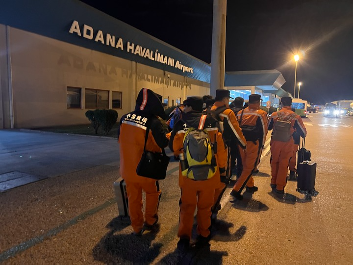 2月8日,中国救援队抵达土耳其阿达纳机场(手机拍摄)。新华社记者 武思宇 摄