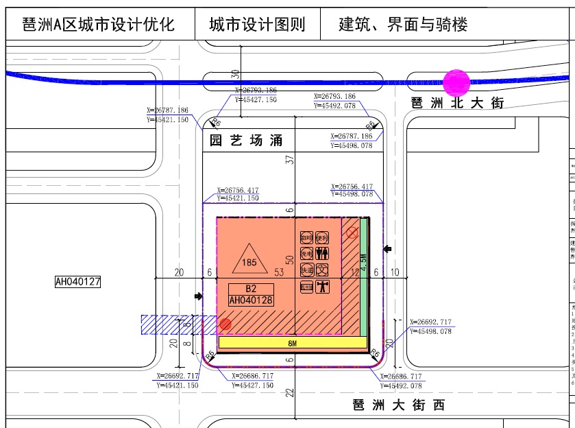 琶洲西区AH040128地块项目位于宝地广场北侧,为中南钢铁总部大楼。项目用地面积5346平方米,总建筑面积约9.3万平方,其中地上建筑面积约7.9万平方米(计容面积74844平方米),容积率14.0,建筑控高≤185米,投资总额约22.4亿元。建筑功能以商务办公为主(部分楼层为总部自用),兼容规划要求范围内的配套商业及公共服务配套设施。