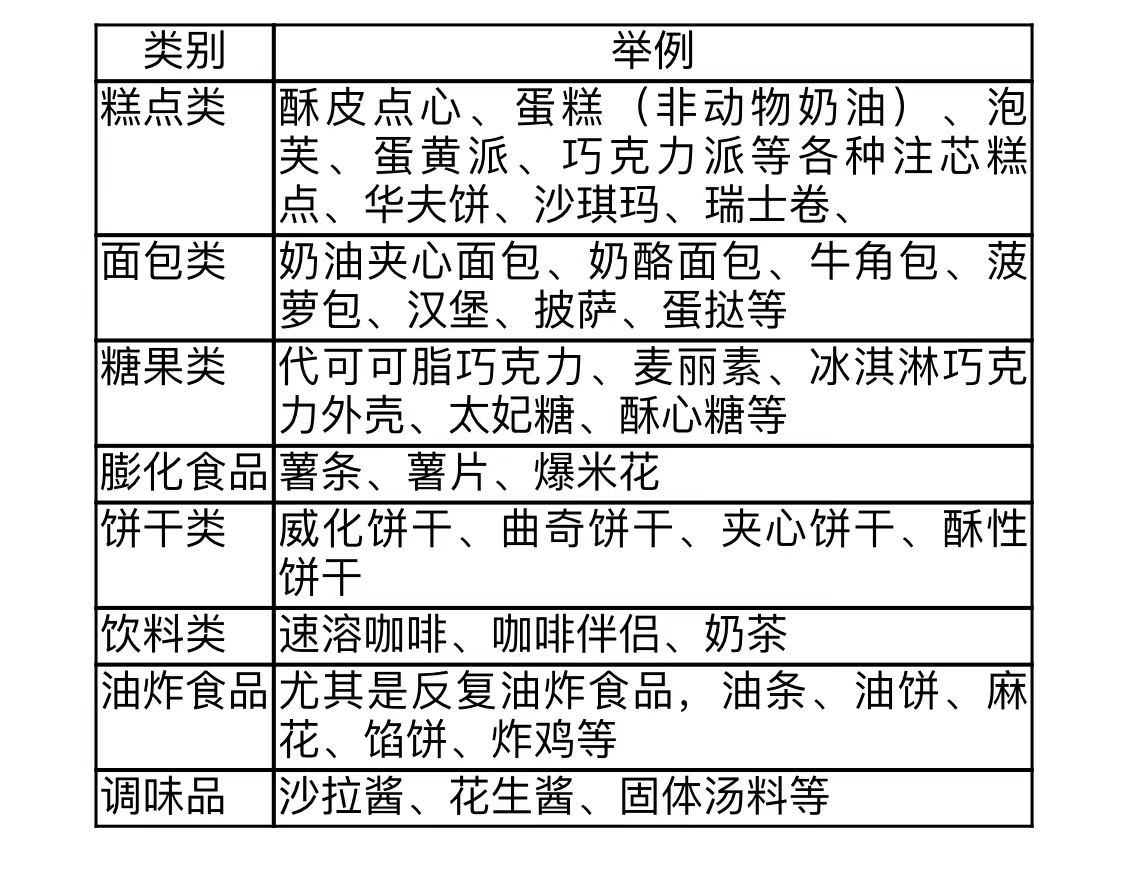 含反式脂肪酸较多的食品类别