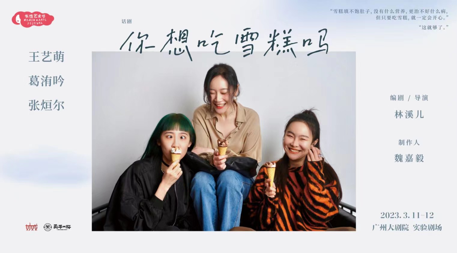 此次艺术节,曾入选2022阿那亚戏剧节演出单元的原创话剧《你想吃雪糕吗》,将以升级后的完整版阵容面向广州观众首演。这是一部完全由女性创作者主导的作品,紧扣当下年轻女性的情感需求与价值选择等议题。该剧由林溪儿编剧导演,葛洧吟、王艺萌、张烜尔三位新生代女演员同台演出,通过“雪糕”这一简单美好的意象,讲述女孩子们最敏感柔软的心事。