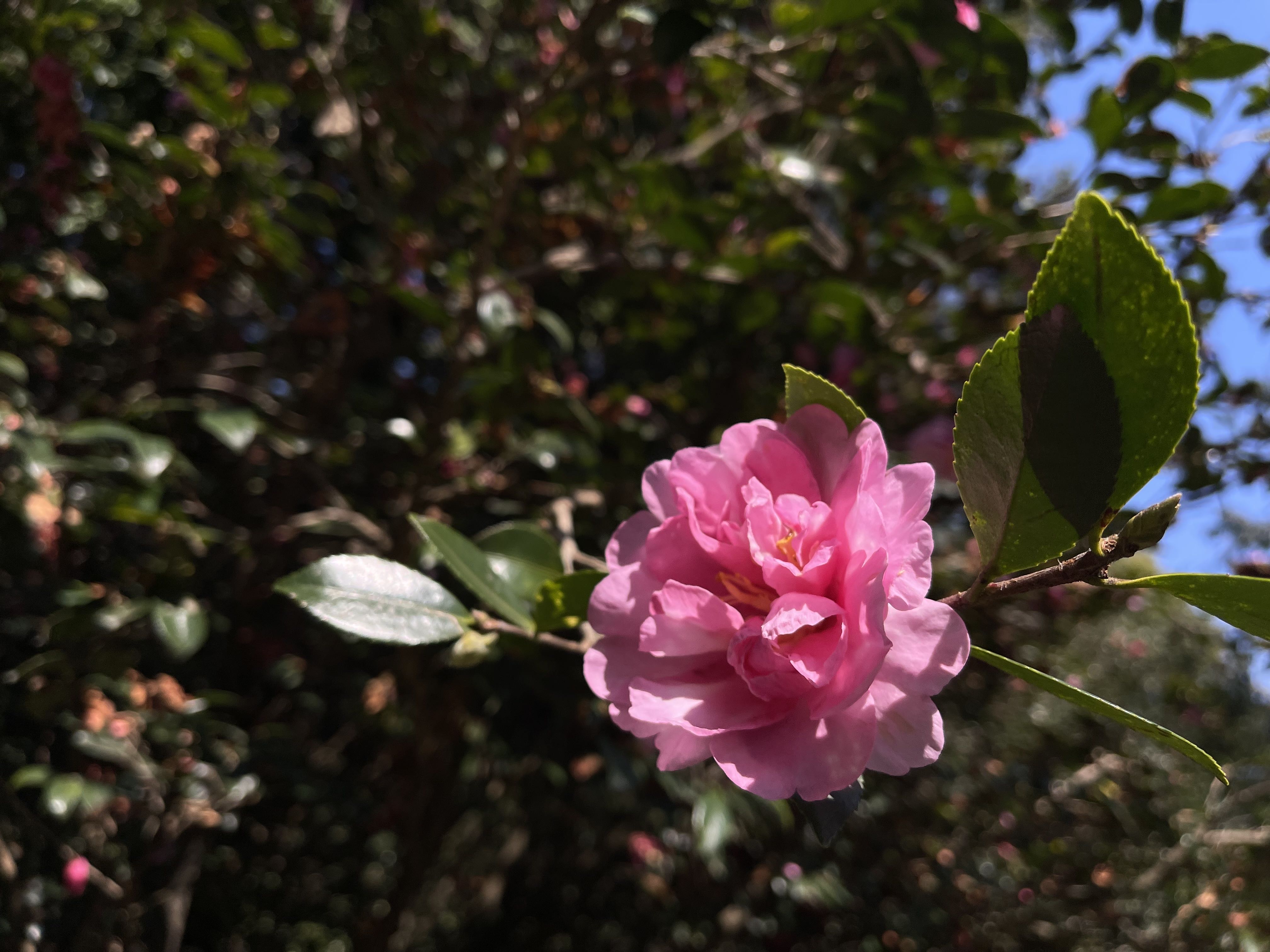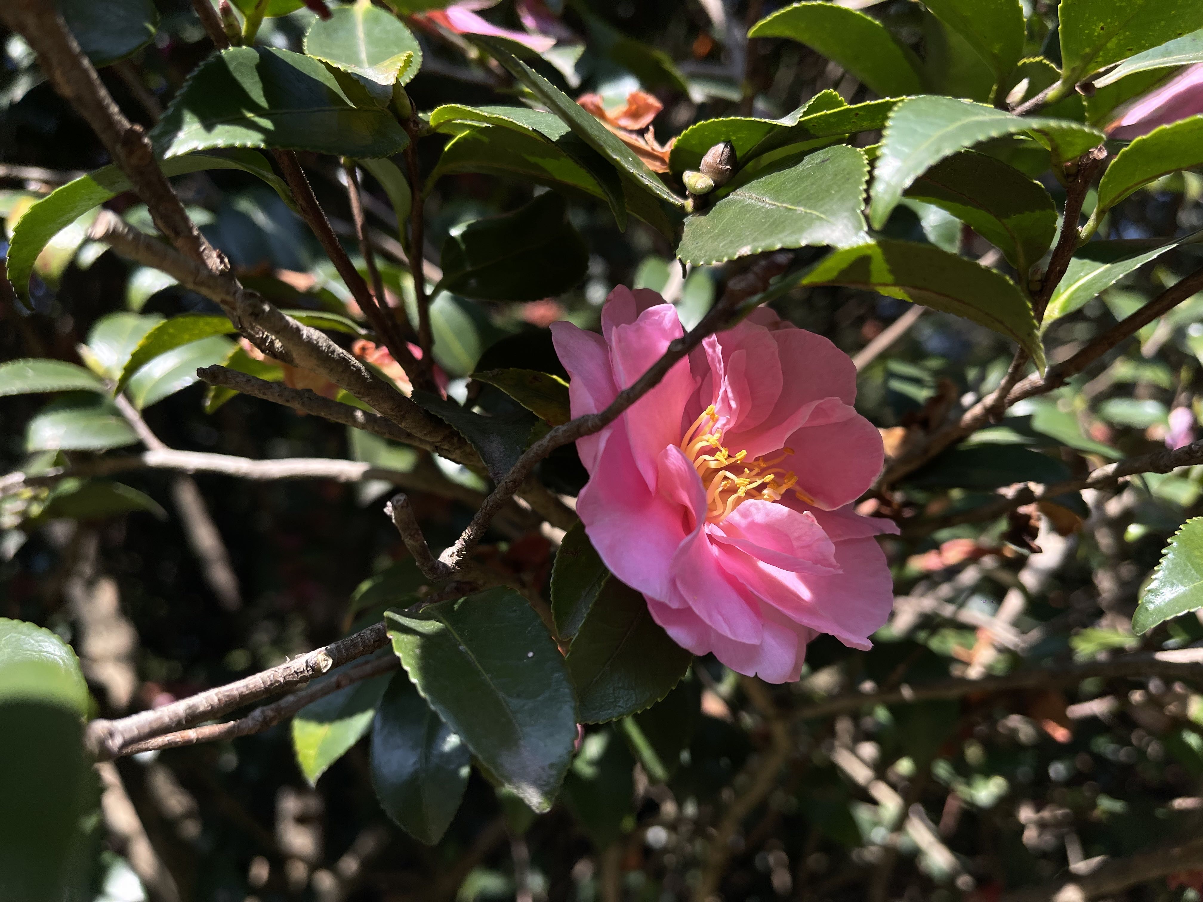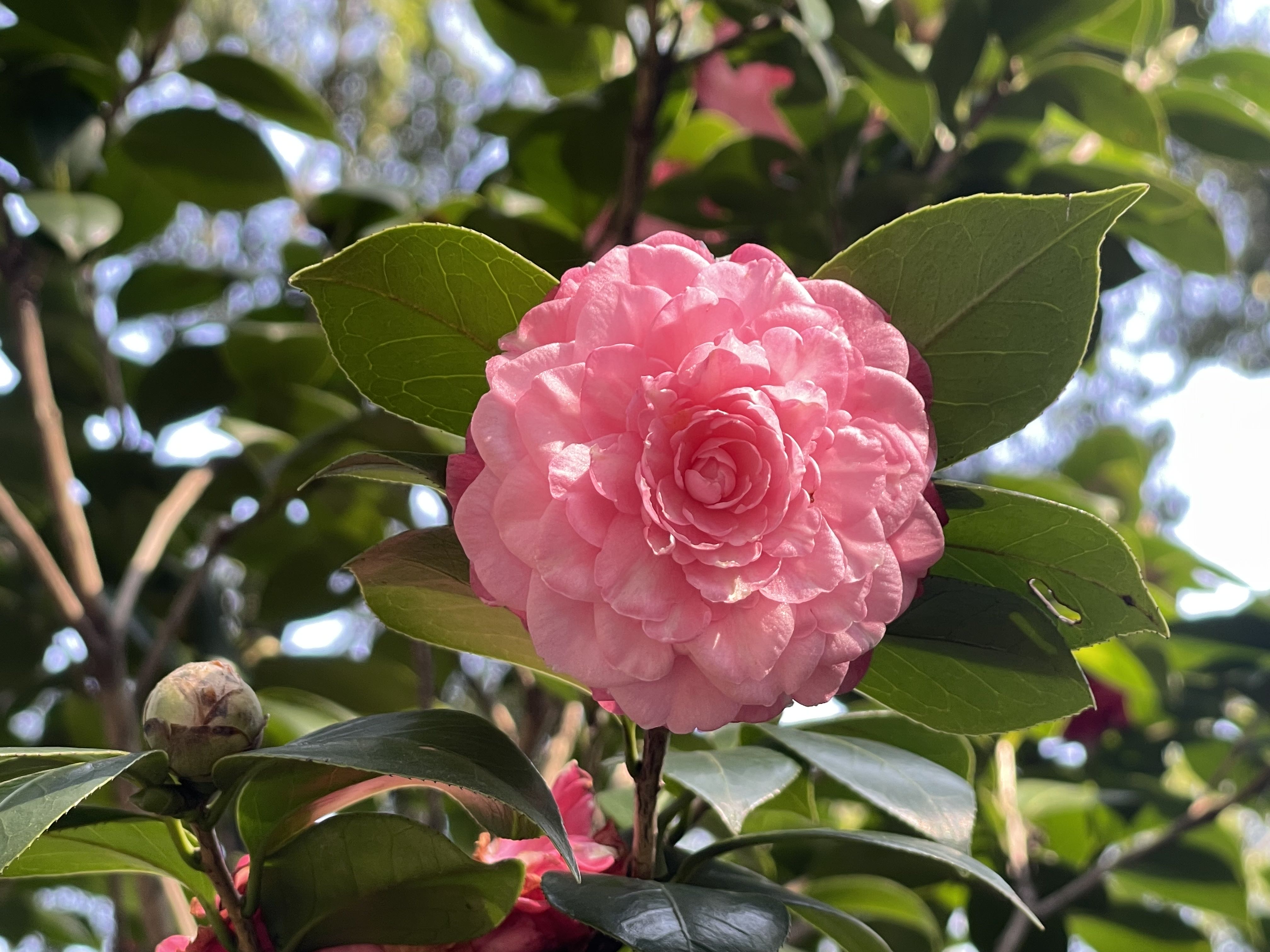 还有一种形似梅花的山茶花,唤作“茶梅”。茶梅的花朵粉中带红,妩媚动人。它的花形不大,直单瓣和重瓣都有,靠近还能闻到些许香味。记者了解到,茶梅是原产日本群岛的了个山茶原种之一,栽培历史悠久,应用广泛。这个品种的茶花栽培品种众多,很多花色鲜艳,花朵和叶片都与原种差异较大。