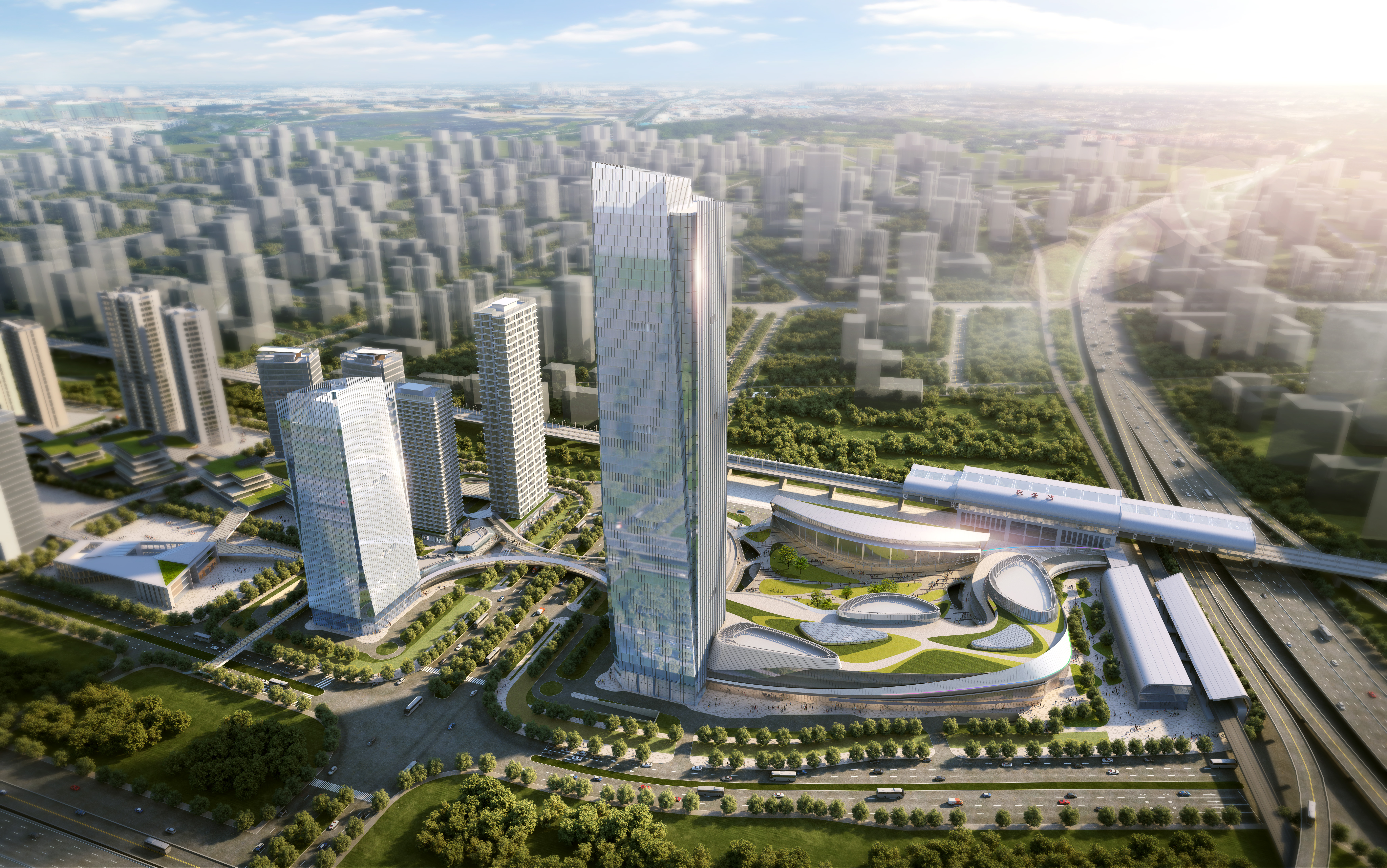庆盛枢纽站场综合体项目位于南沙区庆盛站交通枢纽,总建筑面积约30.7万平方米,一期总建筑面积16万平方米。项目连接高铁站和地铁站,包括旅客集散中心、大型商场、新地标性写字楼、配合公共绿化休憩平台。建成后将成为广州南沙区首个集商业、交通换乘、交通站场为一体的公共建筑。
