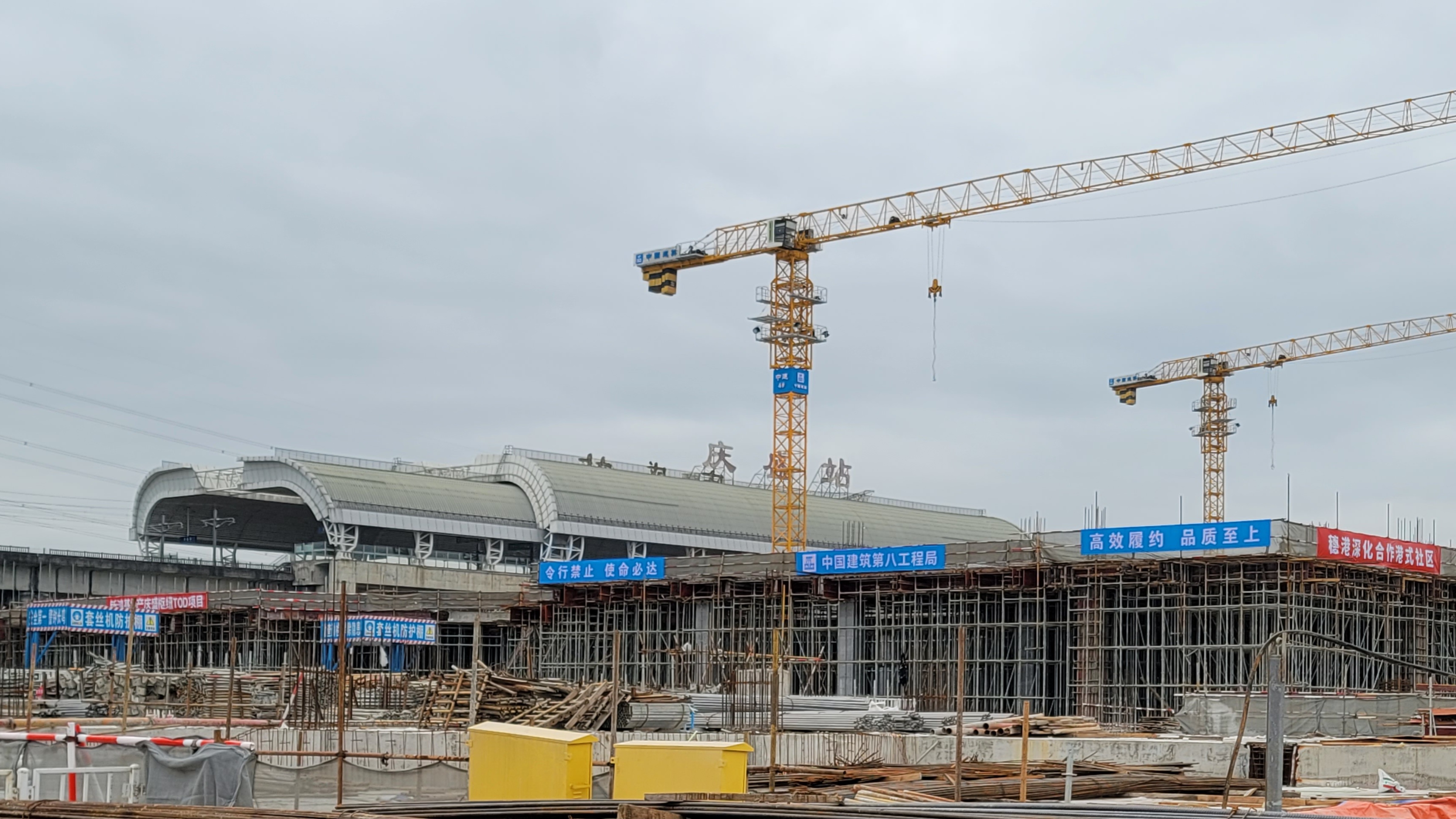 近日,80多人的香港考察团从西九龙搭乘高铁来到南沙,这是两地恢复通关后首个访问内地的香港考察团。庆盛枢纽站场综合体项目是他们到达南沙的第一站。记者从承建方中建八局获悉,项目已全面复工复产,主体建设即将接近尾声,将成为南沙又一地标性建筑。