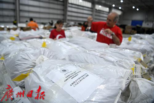 一方有难,八方支援。连日来,在广州市花都区一处救援物资集纳仓库内,土耳其驻广州总领事库特鲁·阿义坎带领工作人员忙碌地打包物资,一忙就是深夜。这里堆放着来自全国各地寄过来的救灾物资,包括发电机、睡袋、服装、毛毯、暖宝宝、鞋子等,待打包妥当后,将从广州白云国际机场分批发往土耳其。2月10日下午,记者探访该物流仓库,计划采访土耳其驻穗总领事和相关工作人员,了解目前援助情况。