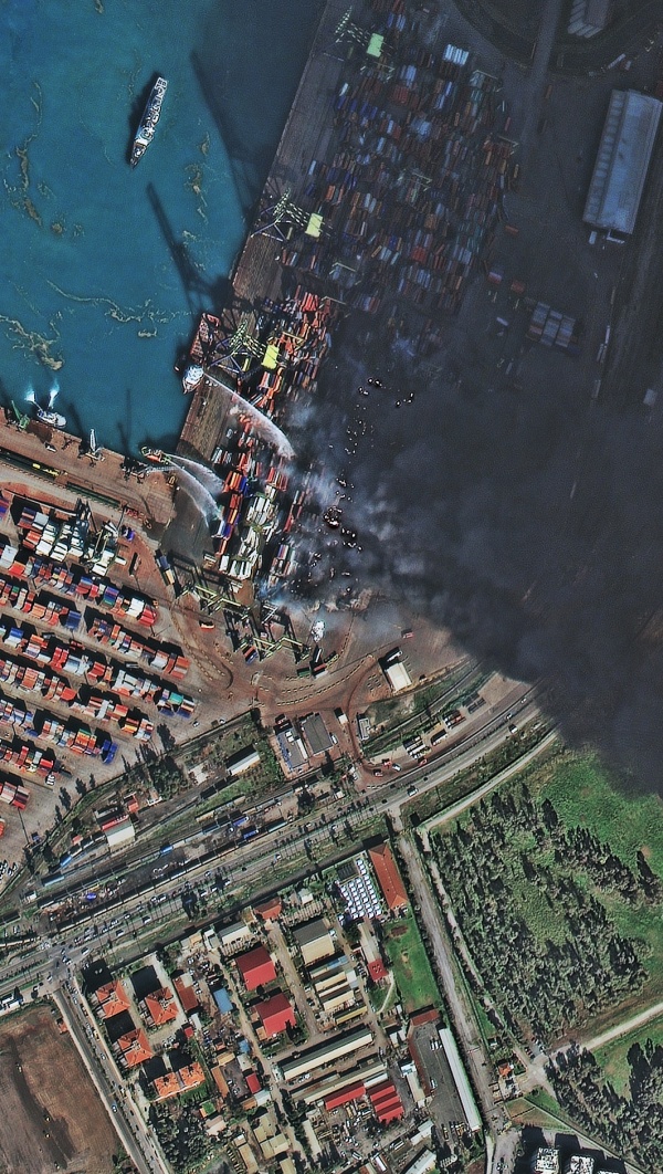 此外,此次地震也对土耳其许多重要的能源基础设施和主要港口造成了严重破坏。高景一号04星2月8日拍摄到土耳其伊斯肯德伦港卫星影像显示,这座土耳其在地中海的重要港口内,大量堆放的集装箱在震后倒塌,并在随后引发火灾。火灾发生后,当地港口管理部门和市政当局实施救火作业。