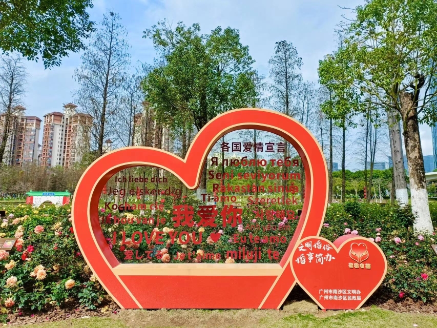 据介绍,心园将于2月14日情人节正式开放,届时形式多样、层次丰富的月季竞相怒放,为新人提供幸福甜蜜的浪漫空间。徐徐微风沿着春日波光粼粼的蕉门河,穿过花团锦簇、芳香四溢的月季花海,新人将在良辰美景中迈进人生的新阶段。