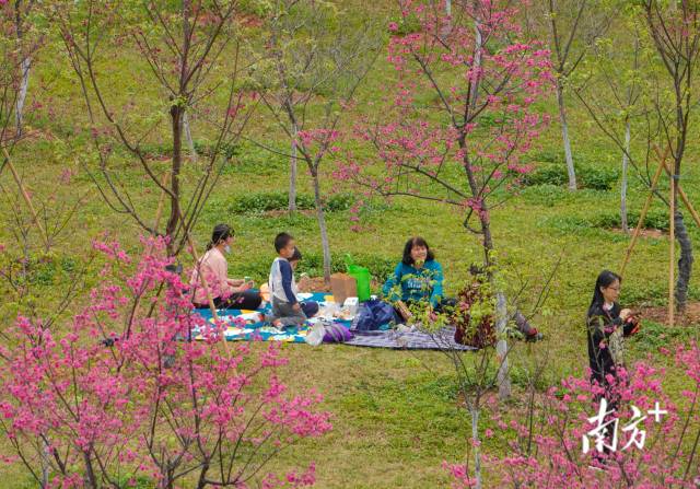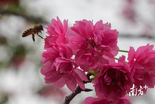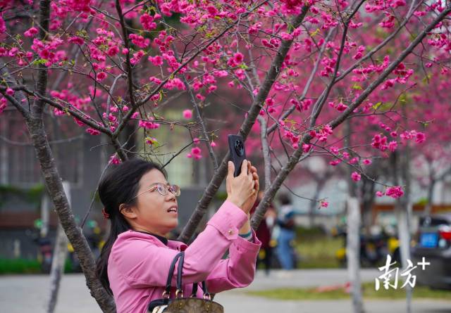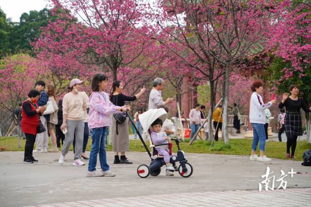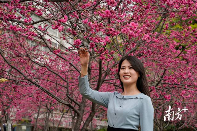 据了解,华农校园内有三大赏樱胜地,分别为动物科学学院、湿地公园和三角市。樱花多以寒绯樱、广州樱等亚热带品种为主,初期绽放红艳,后期则转入粉花期,越开越盛。