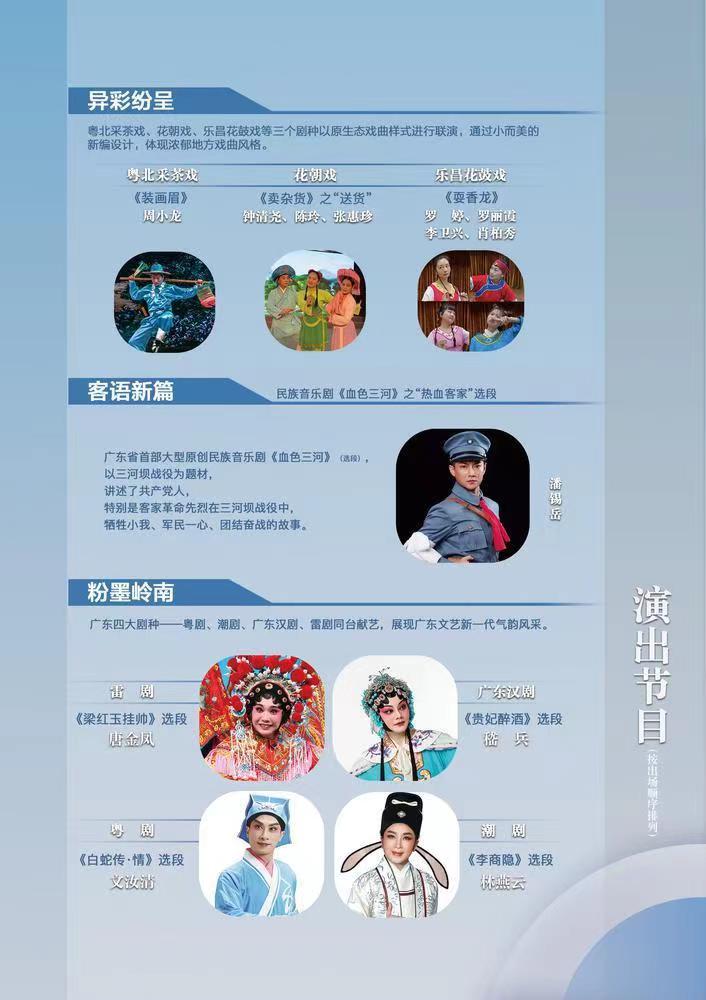 此外,张怡凰、欧凯明、倪惠英、林奋、丁凡和李仙花等广东著名戏曲艺术家献唱代表性作品,尽显岭南戏曲艺术的动人风貌。