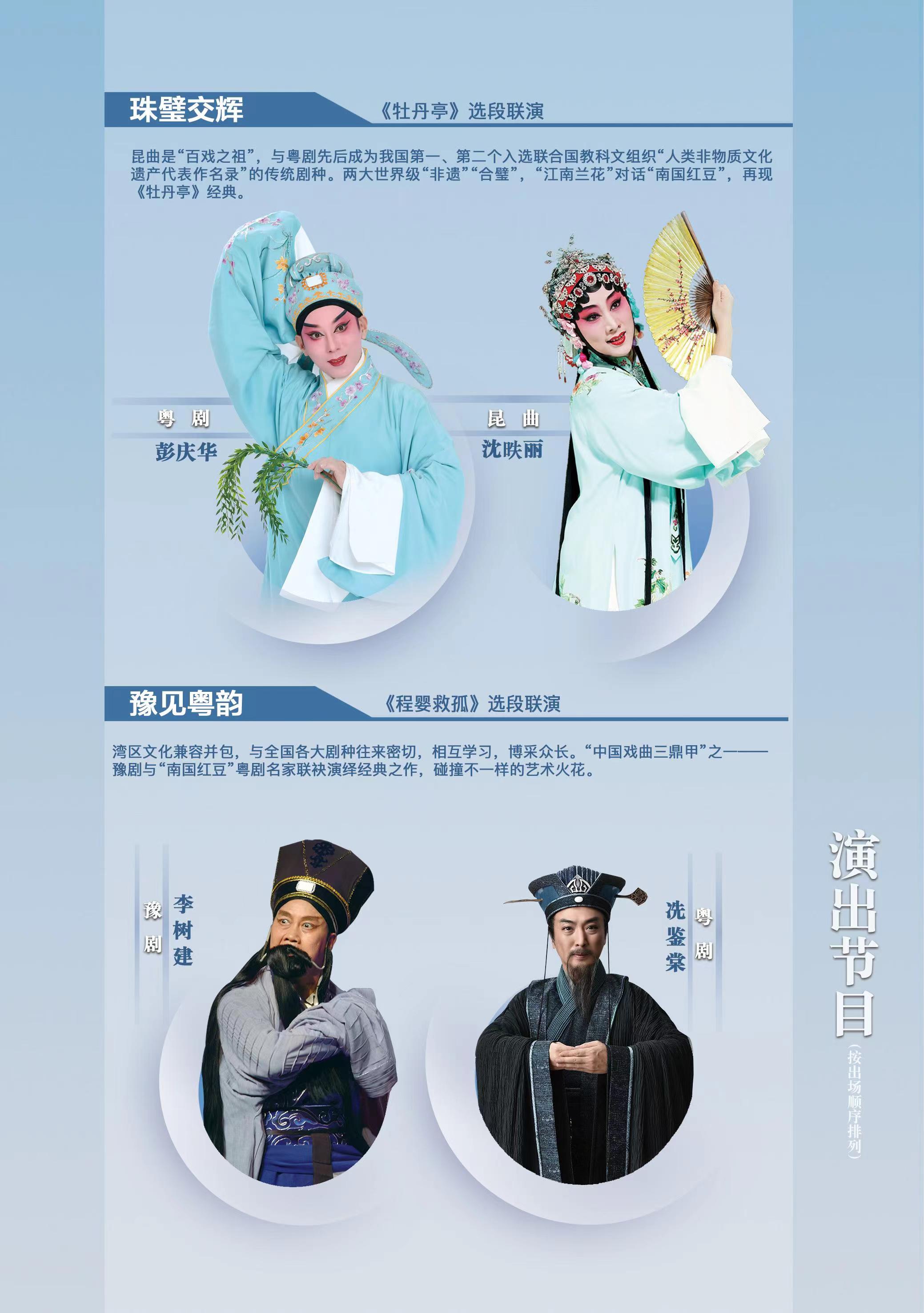 昆曲名家沈昳丽与粤剧名家彭庆华将联袂呈献《牡丹亭》经典,“江南兰花”对话“南国红豆”,两大世界级“非遗”“合璧”,令人期待。而国家级非物质文化遗产项目豫剧代表性传承人李树建,也将联袂粤剧名家冼鉴棠,同台呈现经典——《程婴救孤》选段,看点十足。