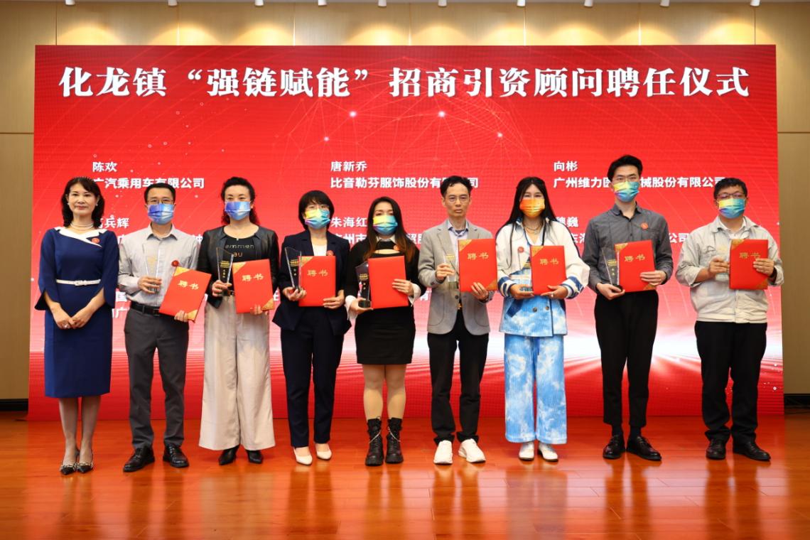 为进一步促进招商引资工作提质增效,化龙镇决定聘任一批重点企业企业家担任招商引资顾问,在大会“强链赋能”招商引资顾问聘任仪式上,来自广汽乘用车有限公司、比音勒芬服饰股份有限公司的15名企业高管正式成为化龙镇招商引资顾问,镇相关领导为招商顾问颁发聘任书。
