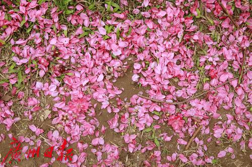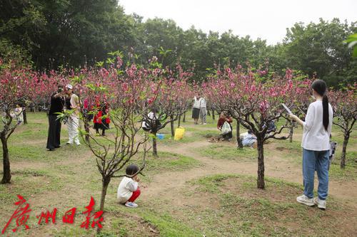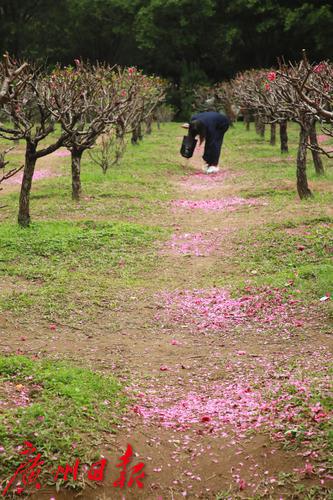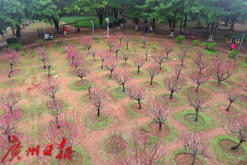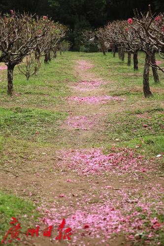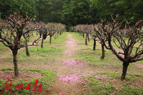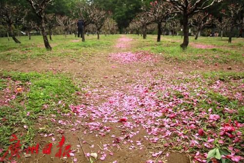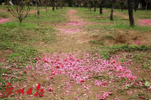 番禺洛浦街道某小区的一片桃花林,春节后成为了居民感受节日喜庆气氛和春天气息的打卡地,每天来这里拍照、玩耍、晒太阳甚至跳舞的居民不下百人。不过,这周居民却发现开得正旺盛的桃花却被全部剪掉了,树上只剩下光秃秃的树杈,地上晒满了粉红色的花瓣。原来,为了明年“桃花依旧笑春风”,物业公司不得不对桃花进行了修剪,并在修剪前通知居民抓紧时间前往赏花和拍照。据了解,桃花开之后桃树就会发芽,由于桃树芽具有早熟和生长量大的特点,如果不修剪,桃树就会疯长,影响来年的树型和成花量,桃树也更容易衰老。
