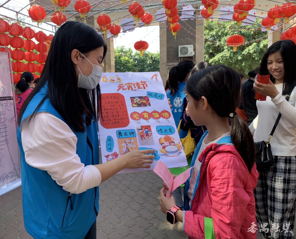 志愿者向居民讲解元宵习俗