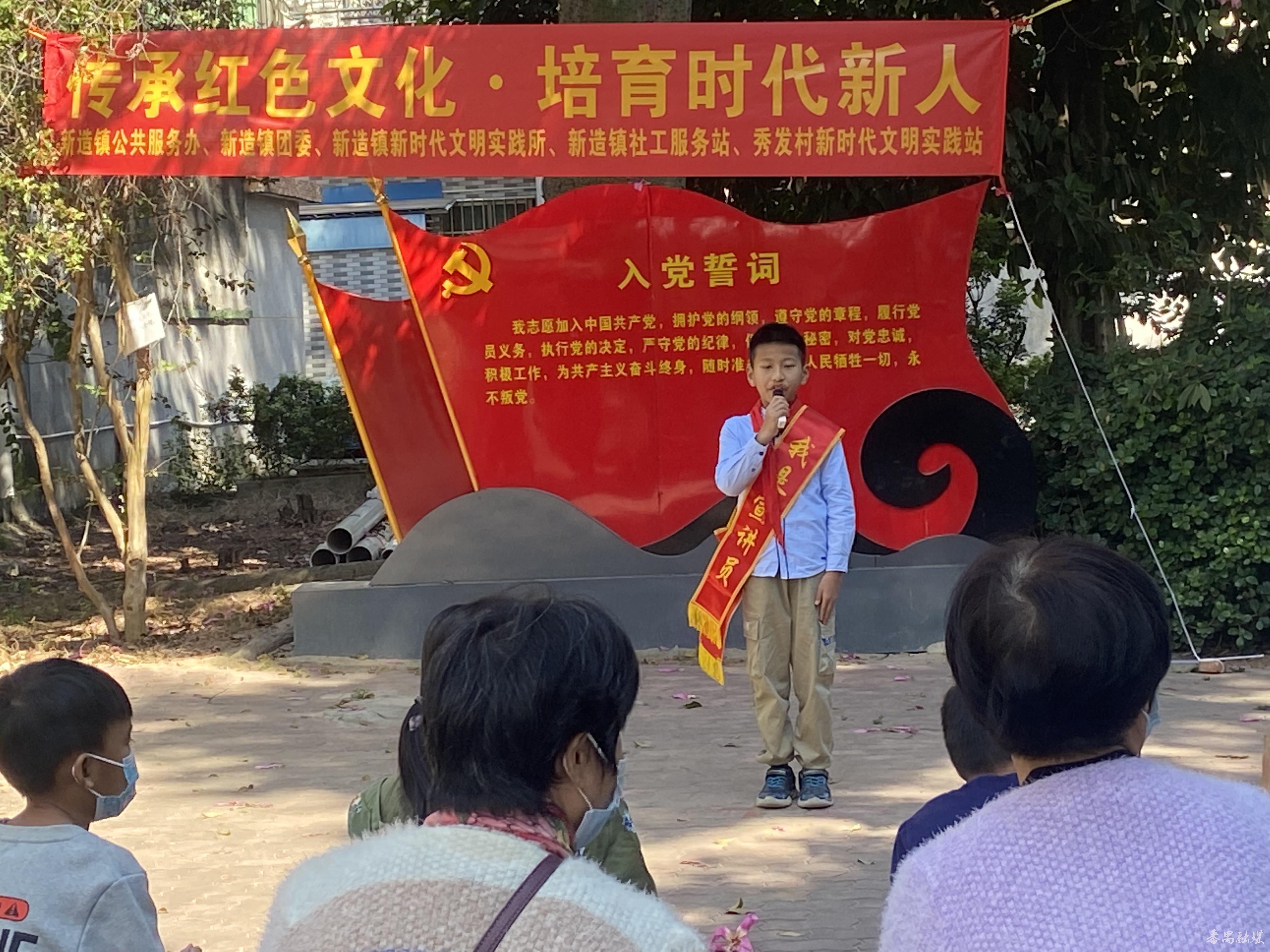 小小讲解员向居民介绍新造红色文化