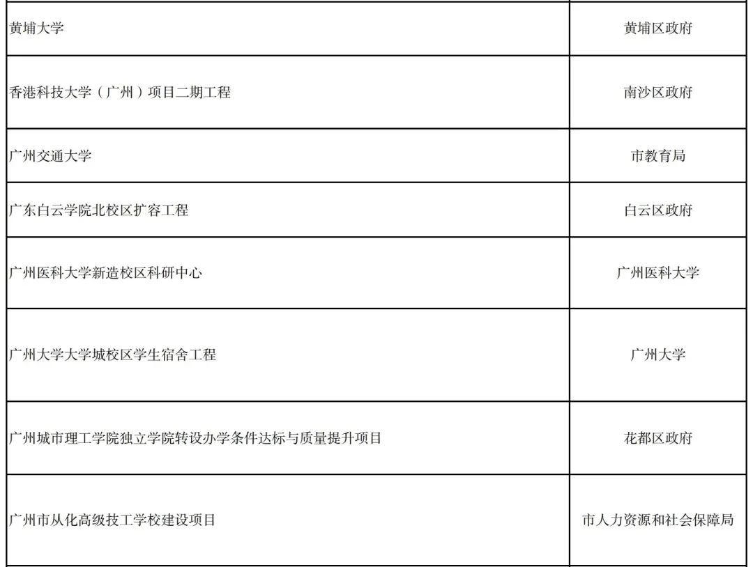 值得关注的是,社会民生项目方面,备受关注的三所高校——黄埔大学、香港科技大学(广州)项目二期工程和广州交通大学均进入预备项目名单。