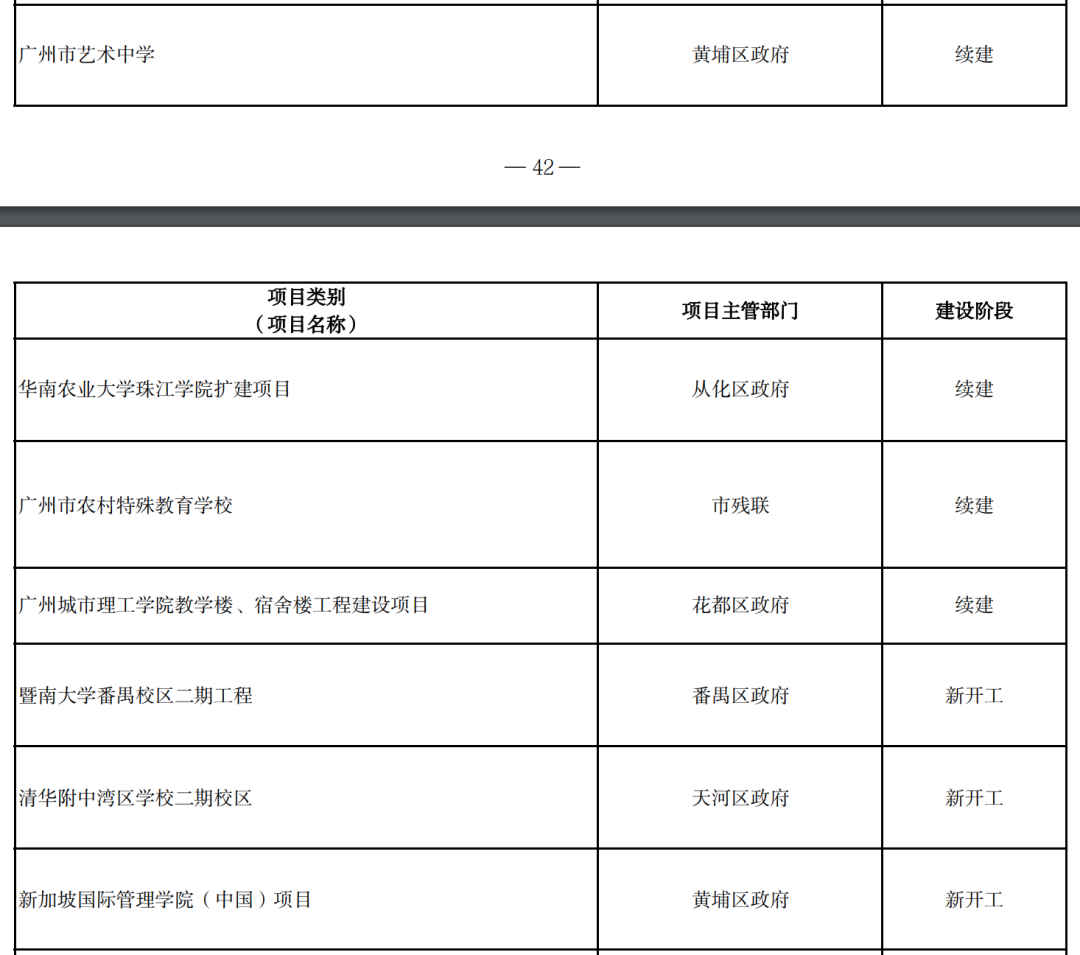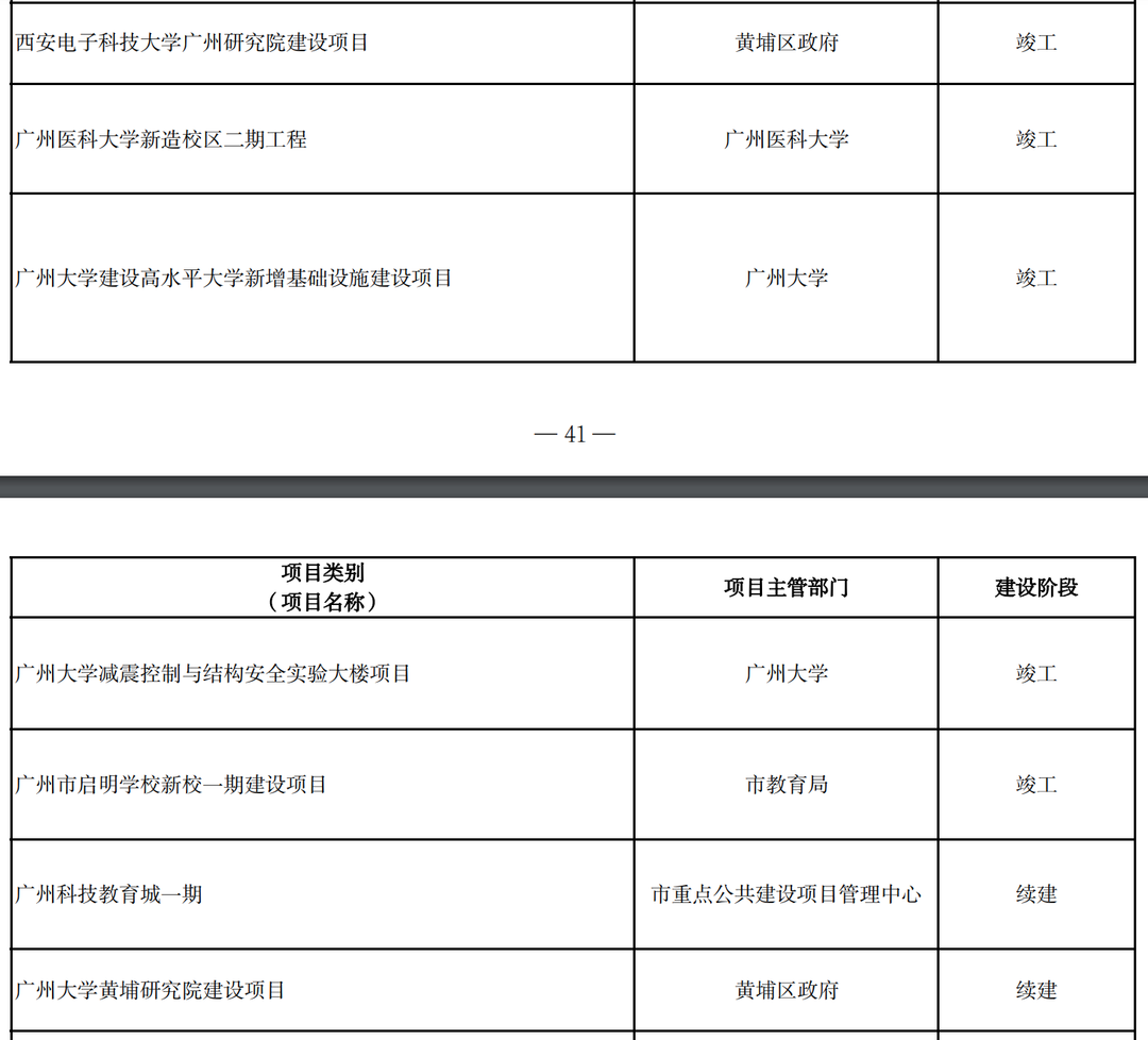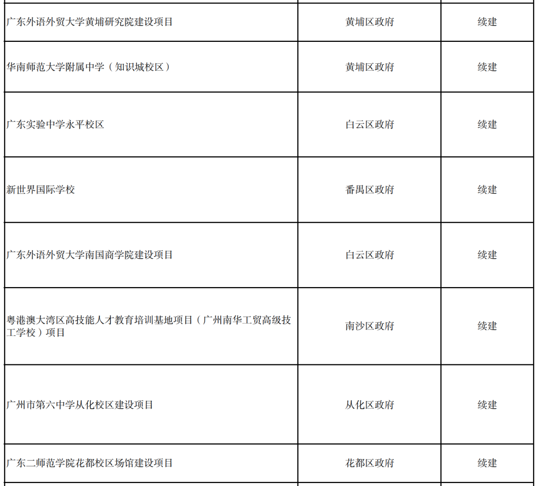 此外,暨南大学番禺校区二期工程、清华附中湾区学校二期校区、新加坡国际管理学院(中国)项目、广州南洋理工职业学院二期工程等将在今年新开工。