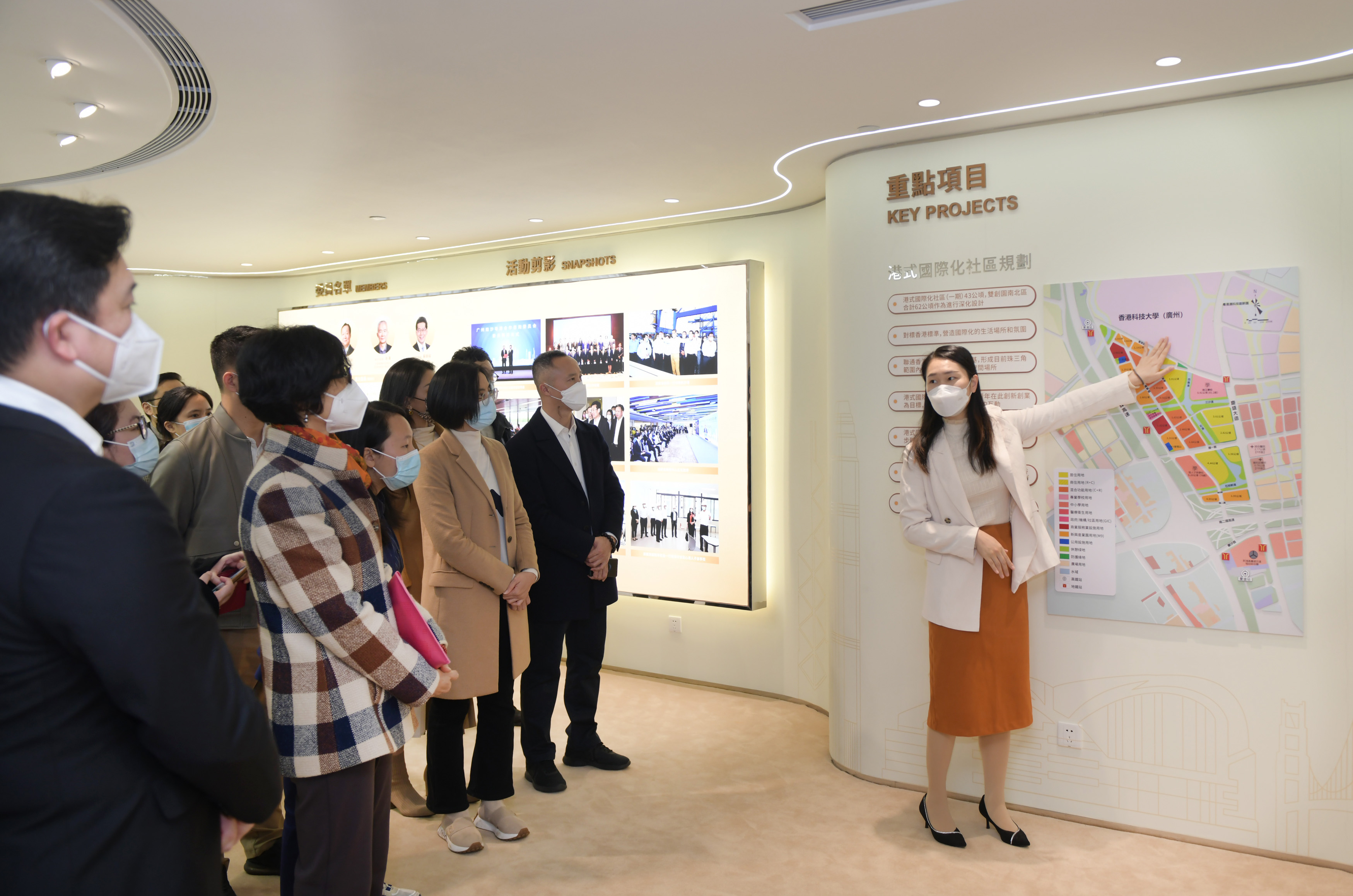 1月12日,廣州市大灣區職場導師庫成立大會在南沙創享灣舉行。圖為工作人員向嘉賓介紹南沙港式國際化社區規劃。