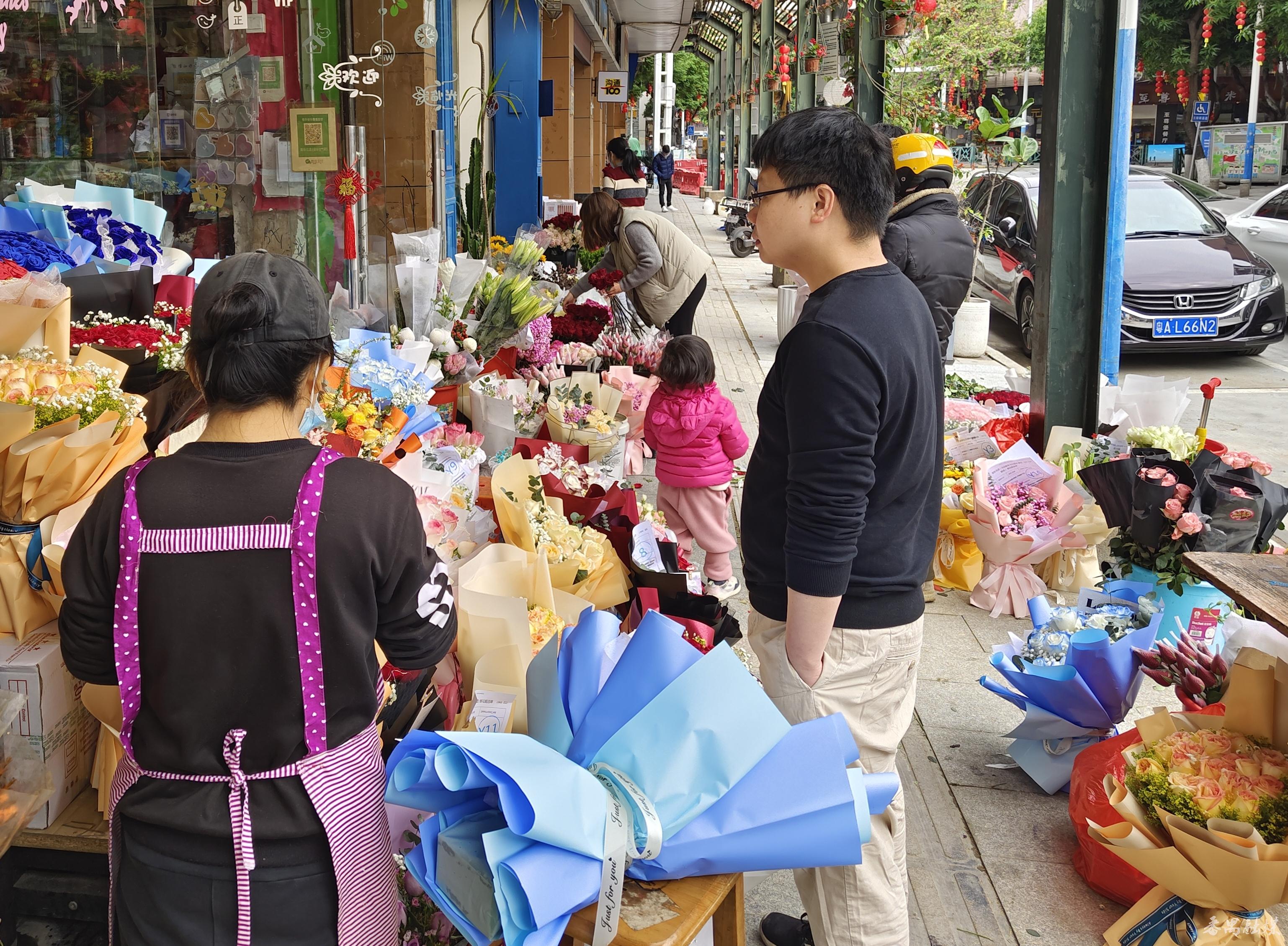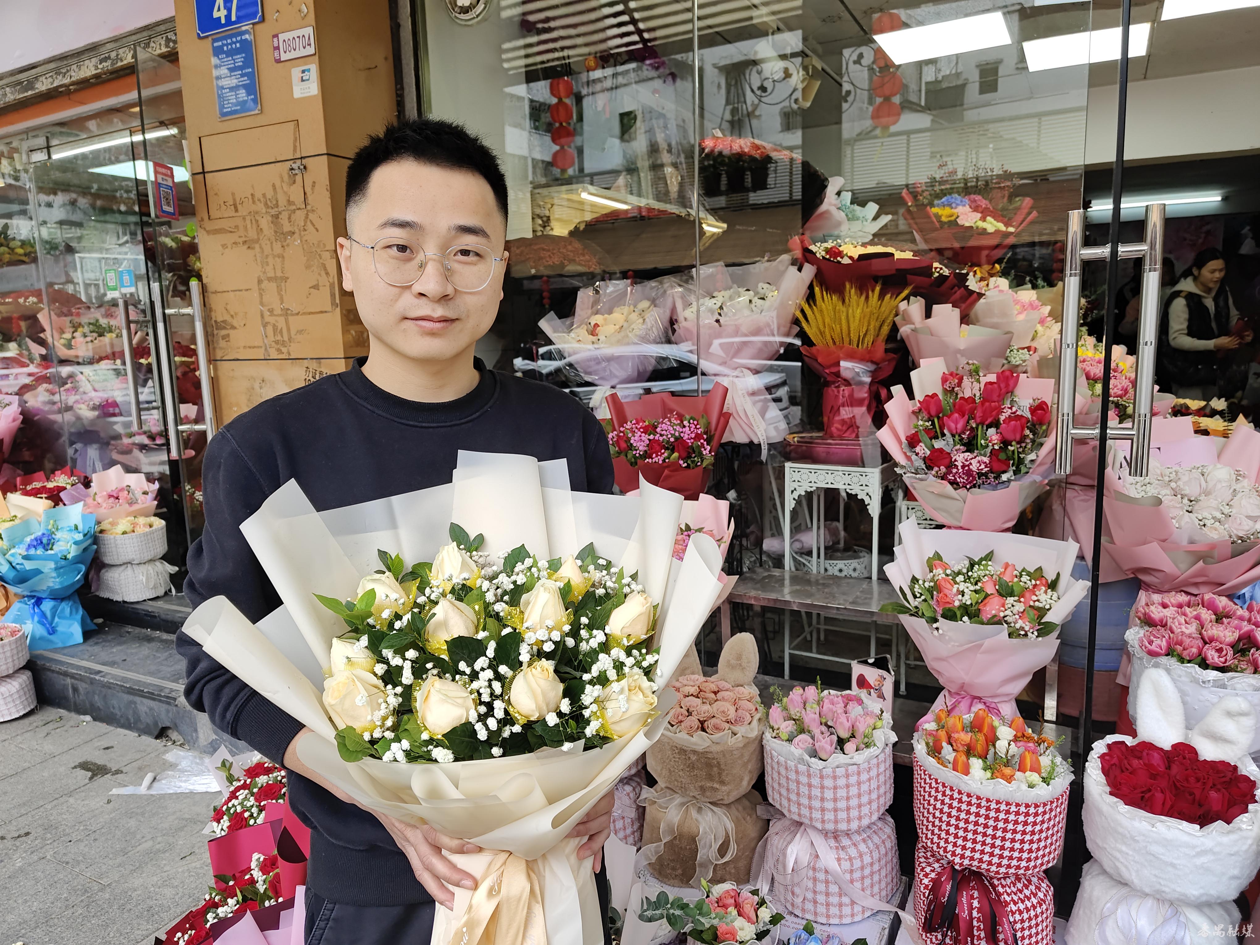 “我今日买了7束玫瑰花,其中一束99支玫瑰是送给女朋友,另外的送给朋友和同事,大概花费了2000多元。”林先生告诉记者,现在年轻人都注重仪式感,他也想给爱人和朋友制造一点小惊喜,所以专门开车过来挑选鲜花 。