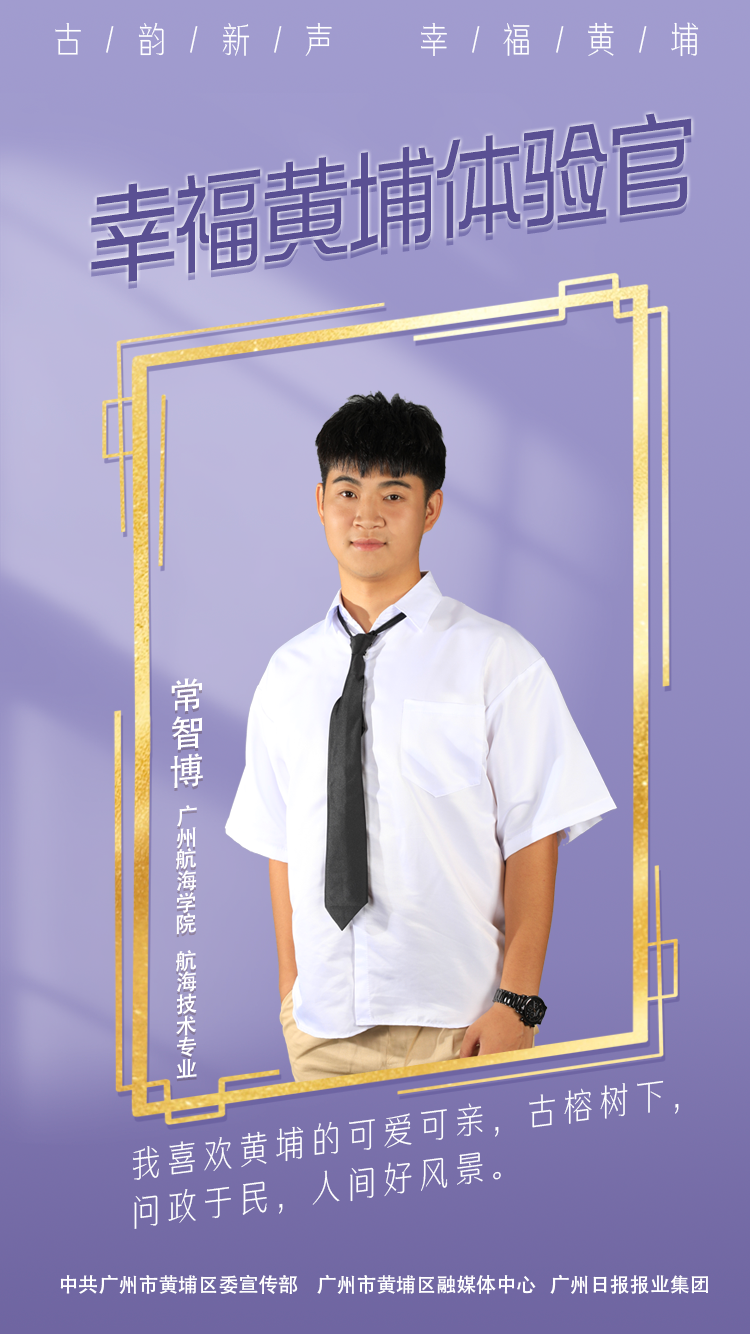 “作为航海学子,我会继续将黄埔精神发扬下去。”常智博平日里对海事文化就颇为关注。在学校,他还是国旗护卫队的一员。如今获选“幸福黄埔体验官”称号,常智博力推大家一游南海神庙和黄埔军校。在他看来,南海神庙文化底蕴更为深厚,更为重要的是,南海神庙不仅古已有之,在现代也发挥着特有的作用。它集高雅通俗、本土国际于一身的特点,令自己十分着迷。