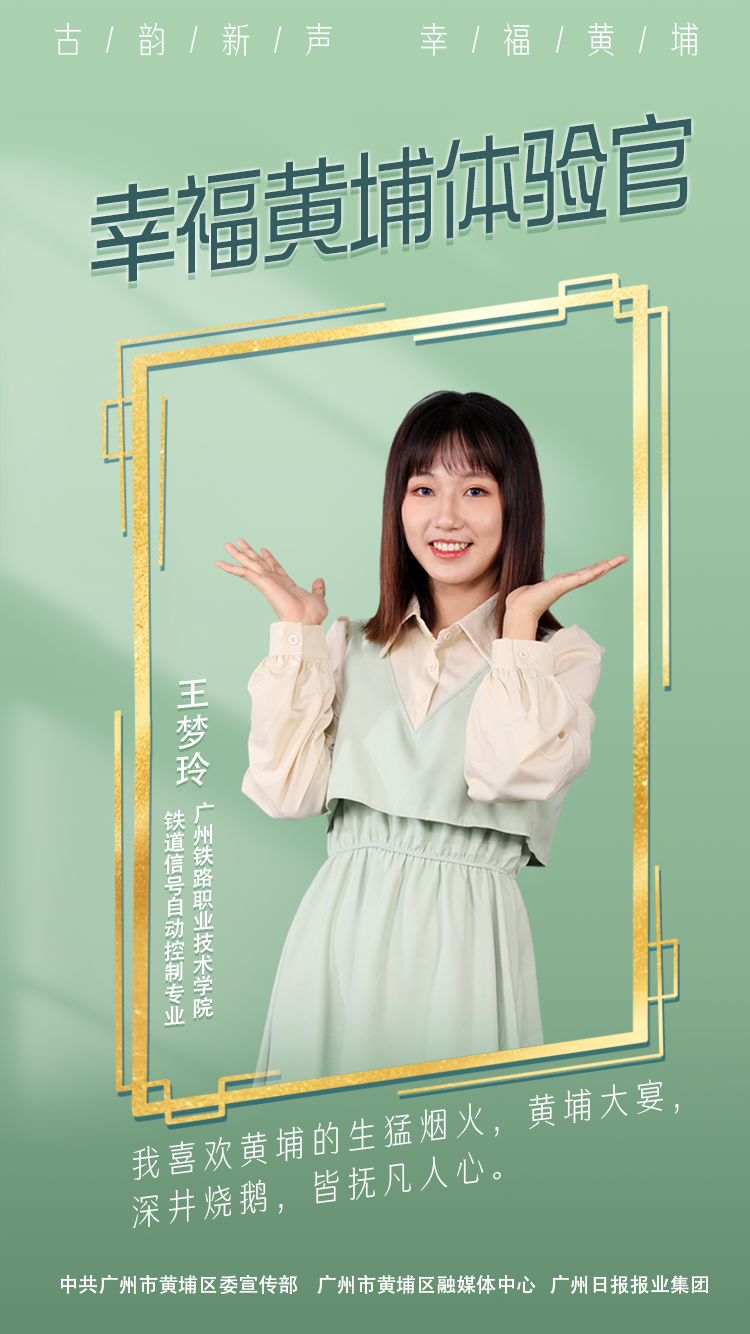王梦玲就读于广州铁路职业技术学院铁道信号自动控制专业,是土生土长的广东人,得知“古韵新声·幸福黄埔体验官”活动的消息后,她第一时间报了名,“之前我对黄埔的印象就是黄埔军校,现在觉得黄埔还有浓重的人文气息。”