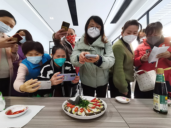 “哎呀,原来是这样清洗鱼血的!”“我终于知道如何处理鱼腥了!”“老师的做法就是不一样,我学到了!”当天,“社区技能学堂”第二期首课“粤菜”——“孔雀开屏鱼”教学在握山社区技能学堂分站点、何屋社区技能学堂分站点学员的阵阵欢呼声中开课。