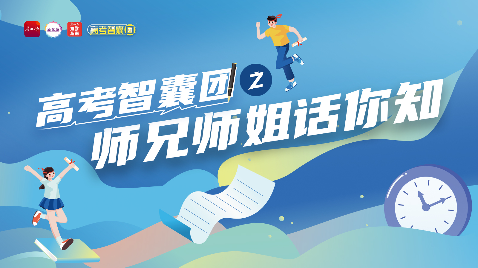 对此,广州日报求学指南推出“高考智囊团之师兄师姐话你知”系列报道,将邀请多位同学分享升学备考经历:他们或出于初中学习状态不佳、中考失利等原因,与“牛校”志愿失之交臂;或因被学校特色教育吸引,选择自己更有把握的“普校”。在高中,他们找到学习的意义,燃起动力,不断探索方法,最终摘得学校状元。